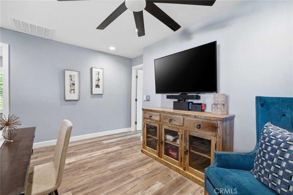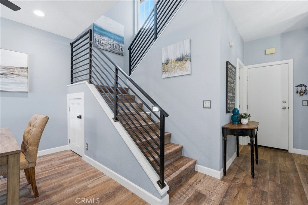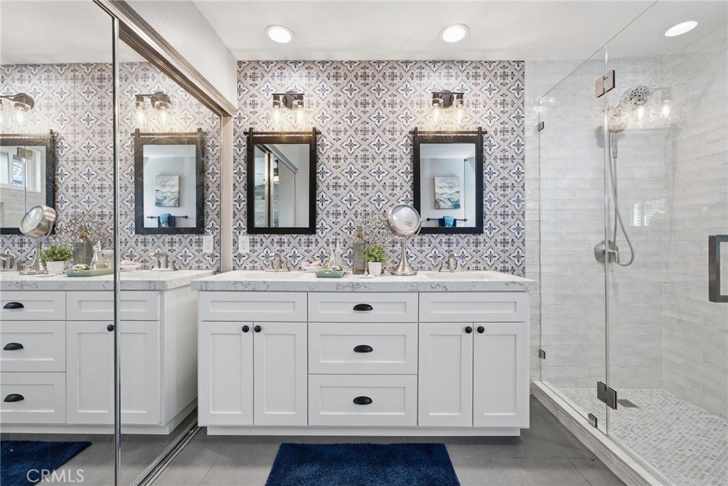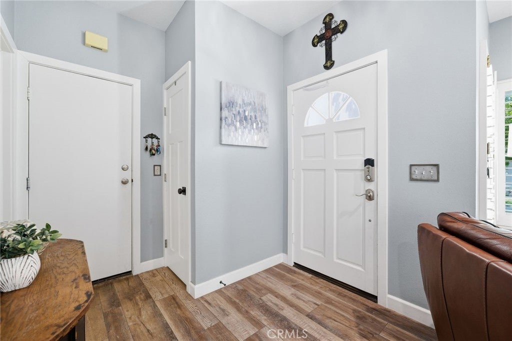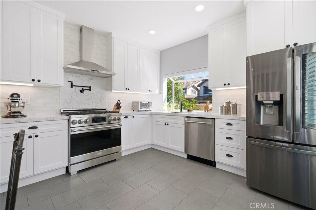 BACK ON THE MARKET!!! Welcome to this beautifully remodeled end-unit townhome ideally located in the heart of Aliso Viejo, just a short walk to Springdale Park. This light-filled home offers four bedrooms plus a spacious loft, providing exceptional flexibility for today’s lifestyle. The fully remodeled kitchen features white shaker-style cabinetry with pull-out drawers, quartz countertops, tile backsplash, and a six-burner gas range. Stainless steel appliances, abundant counter space, and generous storage make this kitchen both stylish and highly functional. The living room showcases laminate flooring, a ceiling fan, built-in speakers, plantation shutters, and convenient under-stair storage. A cozy fireplace with a custom tile surround and white mantel anchors the space, while a new contemporary black stair railing adds a modern design touch. All bathrooms have been completely remodeled, featuring new cabinetry, sinks, fixtures, and custom finishes throughout. Upstairs, you’ll find four bedrooms plus a loft, all with ceiling fans, shutters, and no carpet. A large linen closet is conveniently located off the hallway. The primary suite offers a striking accent wall with wood panel detailing, a walk-in closet, and a stunning spa-like bathroom with dual sinks, custom tile work, and an oversized shower with a built-in seat. Enjoy a private, enclosed backyard with ample outdoor space for relaxing or entertaining. The garage features a clean epoxy floor, adding both style and durability. And...this property has a low rate assumable loan! Located in a desirable community with a pool and spa, this move-in-ready home combines thoughtful upgrades, modern finishes, and an excellent Aliso Viejo location.