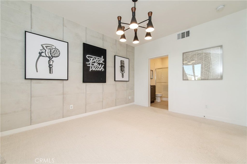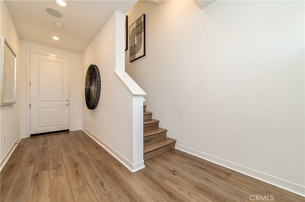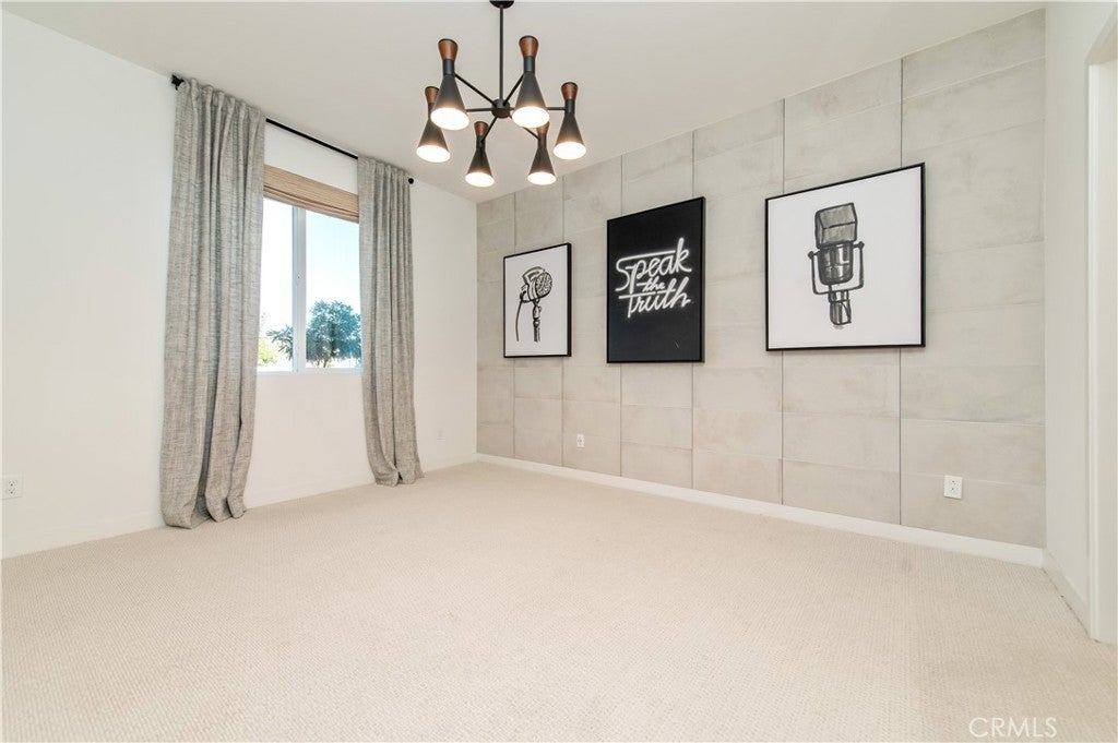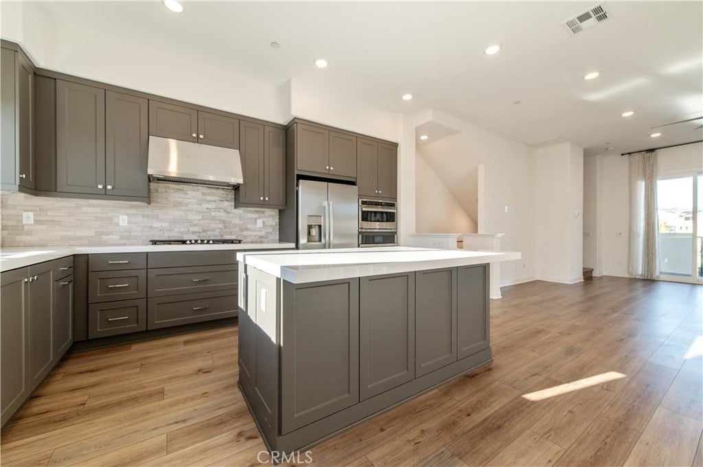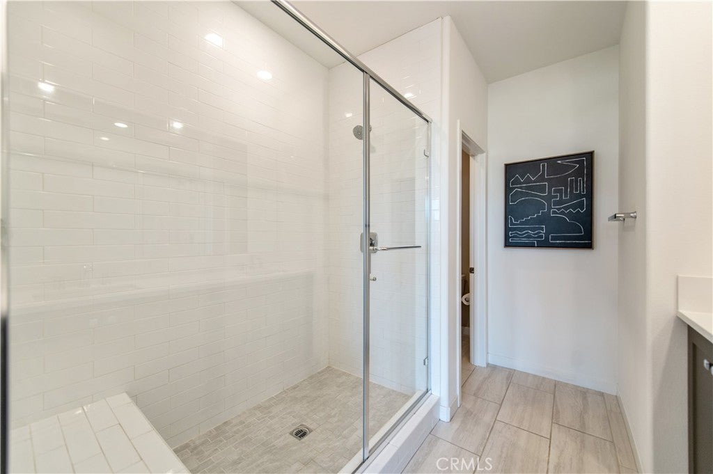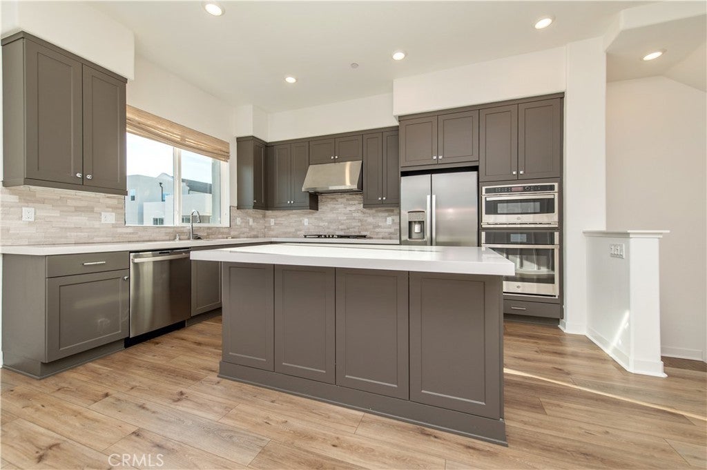Model Home with high-end finishes throughout! Ideally located next to the park, offering immediate access to community amenities and views. The kitchen is a standout, appointed with an upgraded quartz island, full-height tile backsplash, modern white cabinetry, and stainless steel appliances including a refrigerator perfect for everyday living and entertaining. The living area features decorative wall panels, a mounted flat-screen TV, and built-in sound system, while the dining area is highlighted by large framed windows that bring in abundant natural light. A built-in desk area with drawers in the hallway adds a practical workspace for home office or study use. The primary bedroom offers a refined retreat with decorative panel walls, modern lighting, and access to a private balcony. The laundry room is fully equipped with washer and dryer, upper cabinets, and a utility sink for added convenience. The garage is extensively upgraded with epoxy flooring, built-in storage cabinets, an EV charger, and a tankless water heater. Located in the desirable Great Park Neighborhood, residents enjoy access to community pools, parks, and recreational amenities. The home is within the highly regarded Irvine Unified School District and is within walking distance to Solis Park K-8 School, neighborhood parks, and the community pool offering an exceptional combination of comfort, location, and lifestyle.