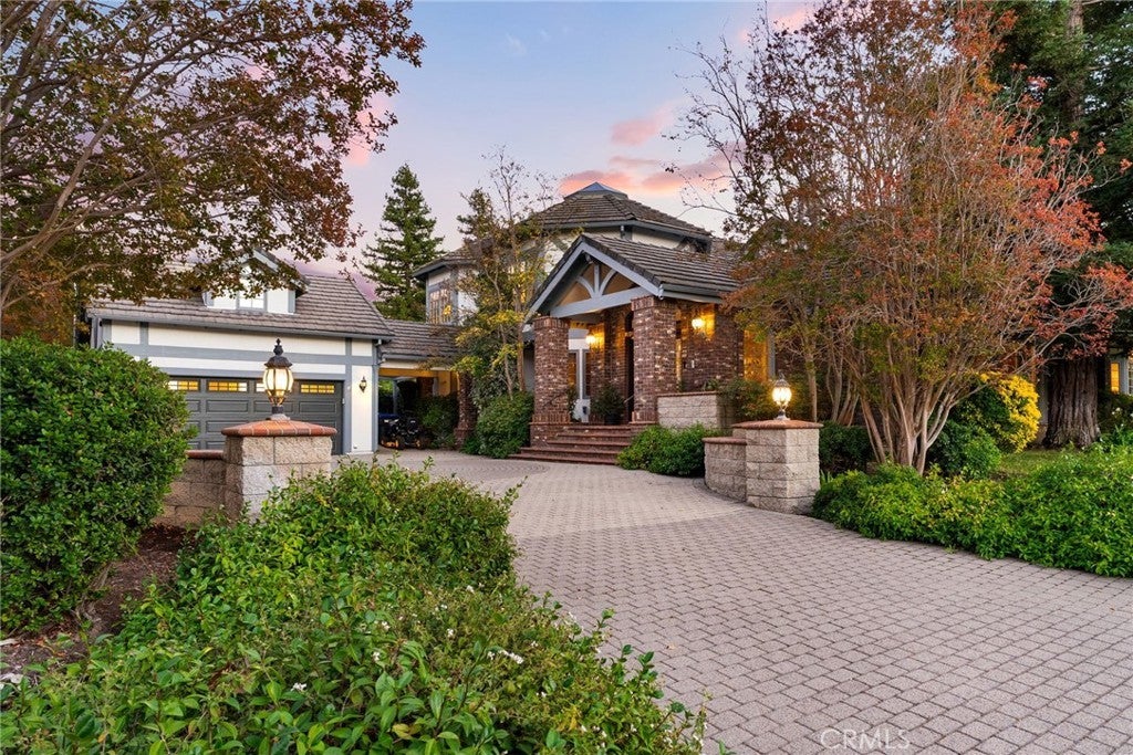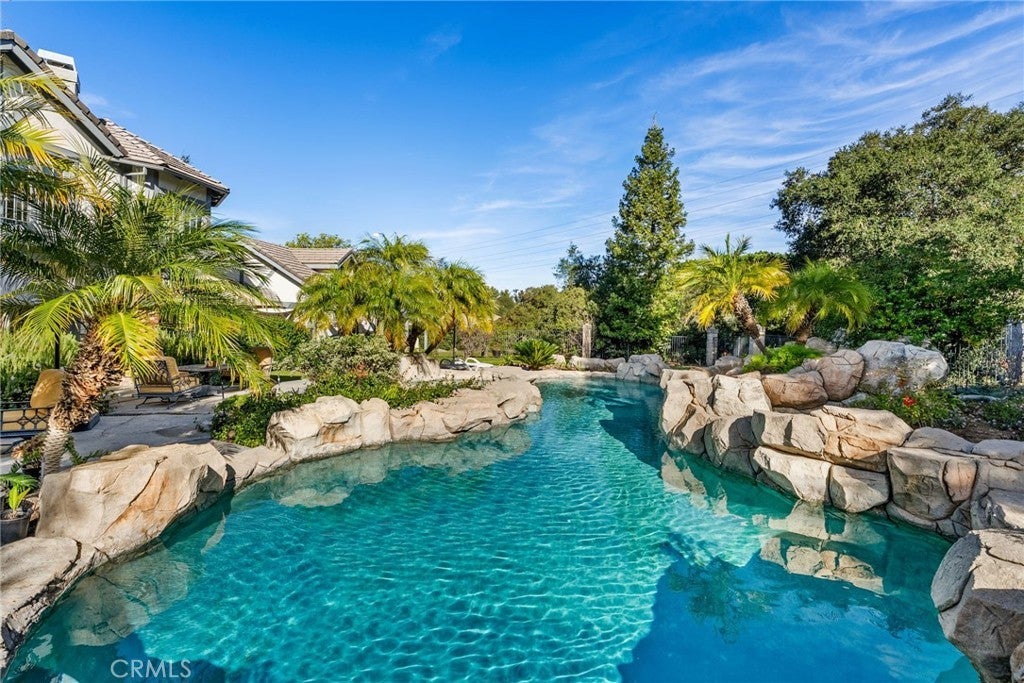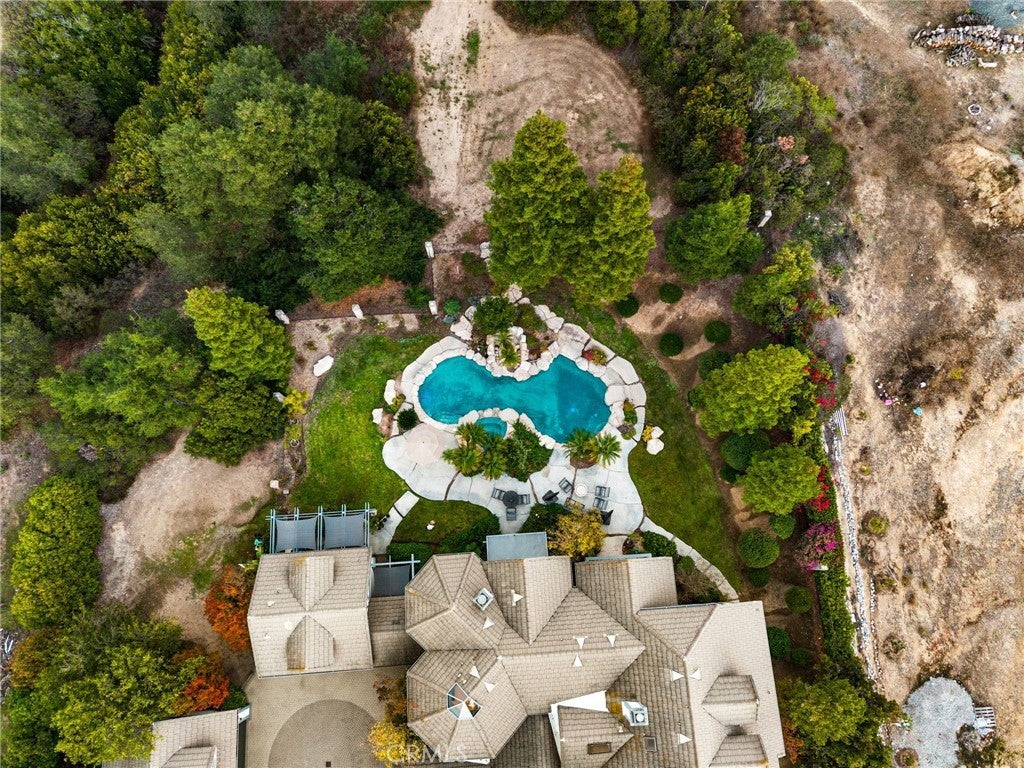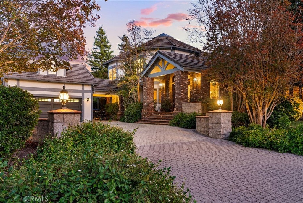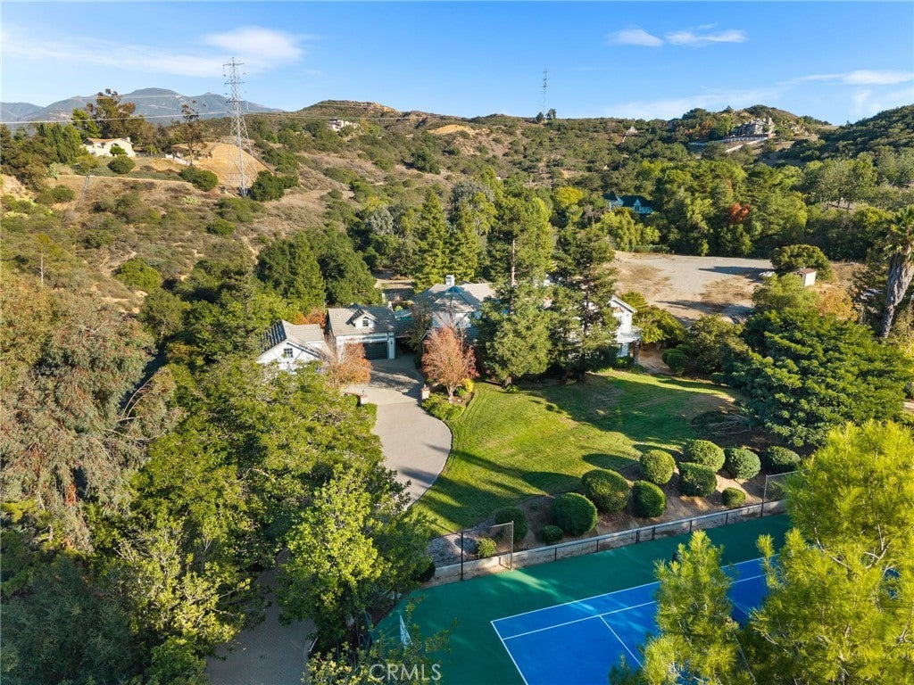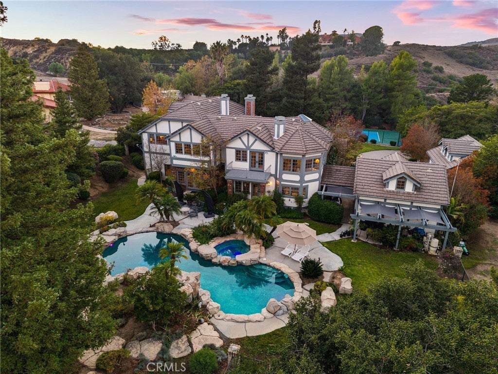 Nestled in scenic Santiago Canyon on an impressive custom estate, this 2-acre compound is a private oasis of luxury and leisure, complete with its own full-size tennis court (can accommodate pickle or paddle) and a resort-caliber pool and spa. The long cobblestone driveway winds through manicured grounds to reveal an expansive residence of approximately 6,785 square feet, boasting 5 spacious bedrooms, 5.5 baths, and garage space for 4 cars with overhead bonus rooms suitable for guest quarters, office space, or a gym. Greeted by grand double doors that open to soaring interiors adorned with polished granite flooring, exquisite crown molding, and newly installed custom front entry doors and several new Pella windows that flood the home with natural light. Multiple fireplaces warm the elegant, formal living and dining rooms, perfect for entertaining, while a cozy breakfast nook and a dedicated executive office add comfort and convenience. The gourmet kitchen is a chef’s dream, centered around a unique pentagon-shaped island with a built-in grill, plus high-end appliances including a built-in refrigerator and double ovens. Modern amenities ensure effortless living, from instant hot water to a premium water filtration system. For recreation and relaxation, the estate features a generous media room, an ample wet bar, and a generous game room designed for family connection. A main-level guest suite provides flexibility for family or possibly a main-floor primary conversion. Upstairs, the lavish primary suite indulges with a private wet bar, a jetted spa tub, dual vanities, and dual walk-in closets, plus views over the estate. Outdoors, enjoy your own private paradise: a full-size tennis court for sports enthusiasts and an awe-inspiring custom rock pool with spa that rivals a luxury resort, creating a serene setting for relaxation and grand gatherings. Additional enhancements include a wired security system, an intercom, a privacy gate, and approximately 10,000 sq ft of open space ready for a guest house, extra amenities, or anything you can imagine. This exceptional compound is priced to sell, offering an unparalleled blend of luxury, privacy, and endless potential, an ideal canvas for the discerning homeowner to reimagine into their personalized dream estate.