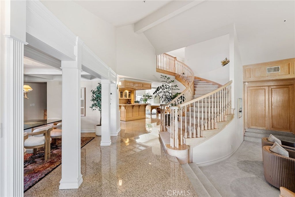 Wet Bar, Breakfast Bar, Built-in Features, Balcony, Breakfast Area, Crown Molding, Cathedral Ceiling(s), Dry Bar, Coffered Ceiling(s), Separate/Formal Dining Room, Eat-in Kitchen, Granite Counters, High Ceilings, Open Floorplan, Pantry, Pull Down Attic Stairs, Stone Counters, Recessed Lighting, Storage, Intercom, Tray Ceiling(s)