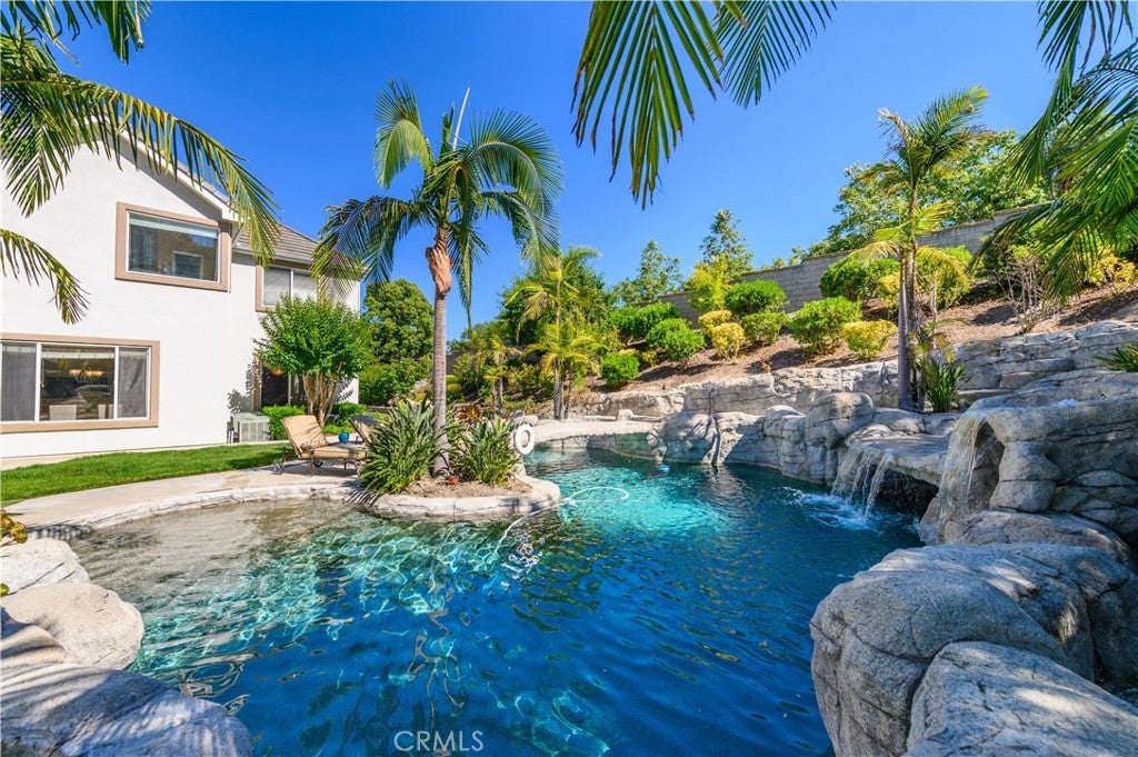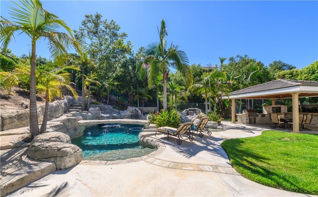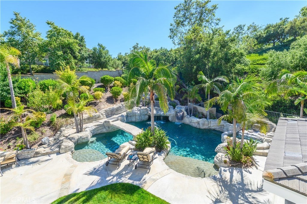 Gorgeous two-story Located at the Guard gated community in Coto de Caz. Corner Location with Mountain view. Open floor plan with high ceiling , features 5 bedrooms, 4.5 Bathrooms with bonus room and Office. Downstairs has one bedroom with full bath. Beautifully landscaped back yard includes pavilion w/fireplace, rock pool w/ SPA & waterslides. Convenience close to award-winning schools, shopping, restaurants and Toll roads.