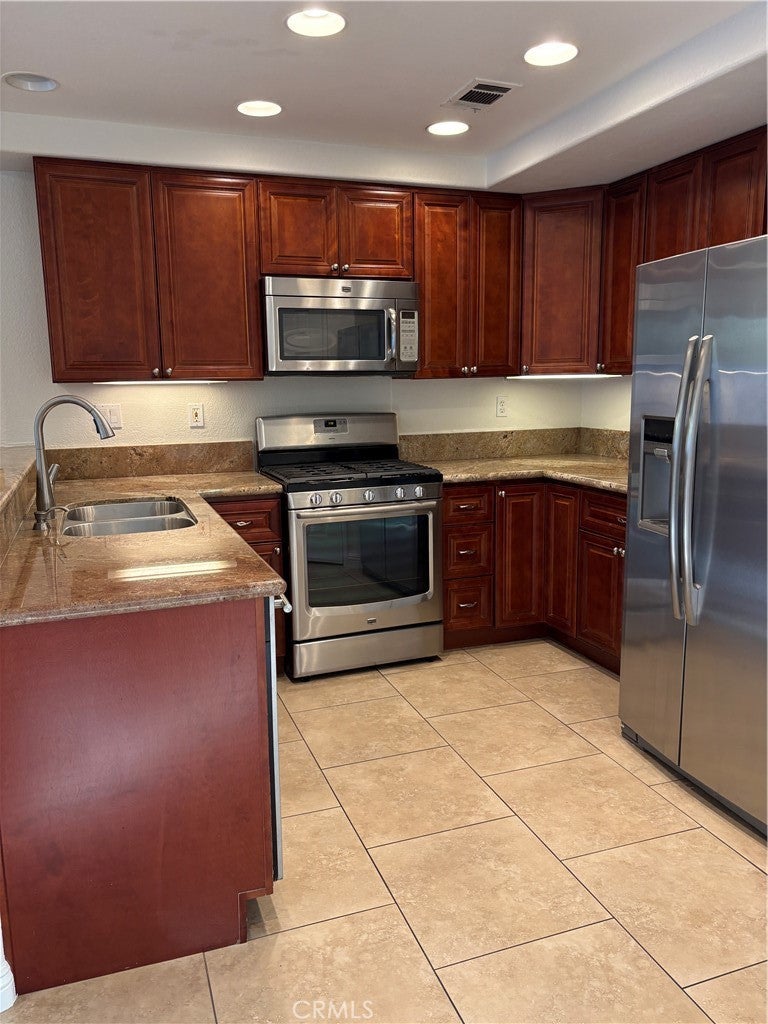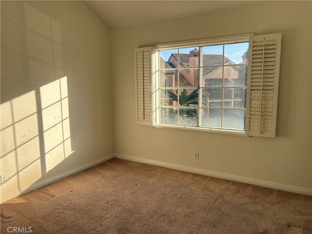 Available now this end-unit townhouse in the highly desirable Altisse community of Aliso Viejo, offering the largest floor plan in the community and a bright, open layout with excellent privacy. High ceilings, skylights, ceiling fans, and plantation shutters create an airy atmosphere with abundant natural light throughout. Tile flooring at the entry, kitchen, and bathrooms provides durability and easy maintenance, while hardwood flooring enhances the main living areas. The main level features spacious living and dining areas centered around a double-sided fireplace, along with a separate family room that opens to the kitchen—creating an ideal flow for everyday living, entertaining, or flexible use. The kitchen is appointed with stainless steel appliances, granite countertops, and a breakfast bar, offering generous cabinet and counter space. The refrigerator is included. Upstairs, the spacious primary suite serves as a private retreat featuring its own fireplace, a walk-in closet, a dual-vanity bathroom, and a private balcony overlooking a lushly landscaped slope. Secondary bedrooms are well-proportioned and benefit from the home’s high ceilings and natural light. Outdoor living continues in the private backyard, complete with custom flagstone hardscape and a deck—ideal for relaxing or hosting. Additional highlights include a two-car attached garage with direct access, laundry located in the garage with washer and dryer included, and access to the Altisse community pools and spas. Ideally located near the Aliso Viejo Golf Course, Aquatic Center, and Town Center, this home offers convenient access to shopping, dining, recreation, and entertainment within a well-established residential setting.