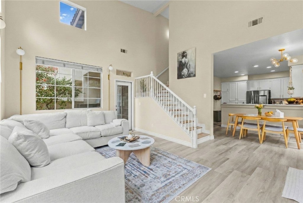 ** Sellers are highly motivated ** " Home insurance is covered by HOA. " This upgraded Rancho Santa Margarita home features a downstairs in-law suite with a full bath, along with " 3 bedrooms and 3 full bathrooms " in a quiet, tree-lined community with Saddleback Mountain views. The open layout offers high ceilings, abundant natural light, and luxury vinyl plank flooring throughout, with updated lighting and a refreshed fireplace. The remodeled kitchen includes updated cabinetry, new countertops and backsplash, upgraded fixtures, and quality appliances. Upstairs are two en-suite bedrooms, including a spacious primary suite with a custom walk-in closet, dual vanity, smart mirrors, barn door detail, and a rain shower. Recent improvements include newer HVAC and water heater, whole-house water filtration with reverse osmosis, paid smart security system, EV charger, garage upgrades, and fresh interior paint. The HOA has recently replaced the roof and sealed the skylight. Enjoy a private patio, resort-style amenities nearby, a two-car garage, guest parking, top-rated schools, and no Mello-Roos.