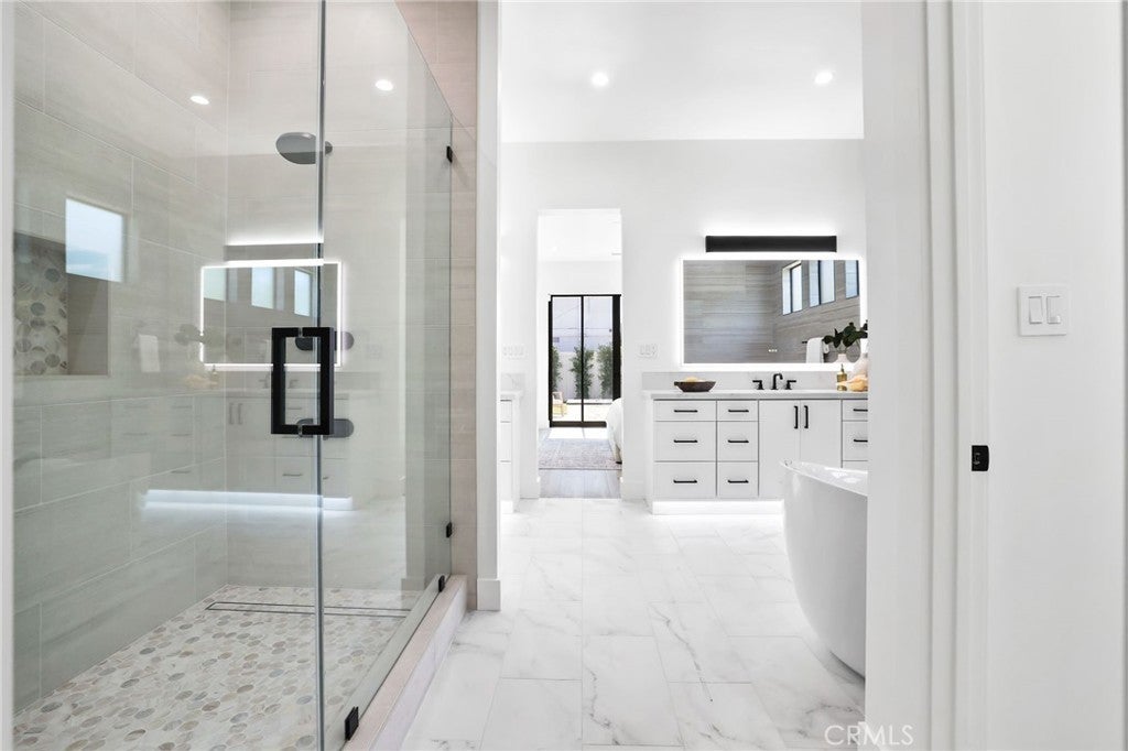 Located in the Coveted Newport Beach neighborhood of Dover Shores this BRAND NEW CONSTRUCTED 2025 Residence is Thoughtfully Curated & Intelligently Designed with a Warm Modern Vibe blending Organic Charm with a Coastal Lifestyle. This completely reimagined Single Story Residence Offers 4 Bedrooms, 4.5 Bathrooms, MASSIVE 3 CAR GARAGE, and a Multi Use Creative Nook. The Attention to Detail & Quintessential California Cool Aesthetic are immediately noticed upon entry through the Oversized 9ft Dutch Door. Creating an iconic California indoor-outdoor flow Paradise is found in the heart of the home. The Great Room encompasses 20' Slider, Vaulted Ceilings, Custom Woodwork Feature Walls, Surround Sound Speakers & Subwoofers, and Fireplace. Cohesively Blending into the Coastal Quiet Luxury Aesthetic of the home is the Entertainers Dream Kitchen, with an Abundance of Floor to Ceiling Cabinets, 48” Commercial Grade Gas Range w/ Custom Hood, Built in 48” Refrigerator, Built in Double Oven, Waterfall Quartz Island, Neutral Artisanal Mosaic Tile, & a Custom Bar Nook w/ Ice Maker & Wine Fridge. The Intelligent Design of this home is highlighted by the subtle hidden entrance to your Primary Suite Retreat. The Primary Suite Retreat will leave you well rested & calm with the coastal breeze coming through the 8.5’ Pocket Slider & into the Spa Like Primary Bathroom featuring a Restorative Shower Digitally Controlled 2 Rain Heads & 4 Body Sprays, Whirlpool Tub, Designer Tile and Spacious Custom Walk In Closet. Away from the Primary, the left Wing of the house features 3 En Suite Bedrooms all Curated with Cohesive Modern Designer Details, and an Office. The Peaceful, Private and Professionally Landscaped Backyard features Multiple Seating Areas, Turff, Built In BBQ Island & Grill, & the Custom Stone Artisanal Fire Pit. Additional Modern Day Upgrades include Modern Metal Roof, 2 TESLA POWER WALLS, SOLAR, Halo 5 complete Water Filtration System, Tankless Water Heater, Sound Deadening Insulation, Cat6 & Hardwired Wi-Fi extenders. Do not forget The Masterfully Designed, MASSIVE 823sqft 3 CAR GARAGE complete w/ Epoxy Flooring. Incredible Home...Come see this one in person!