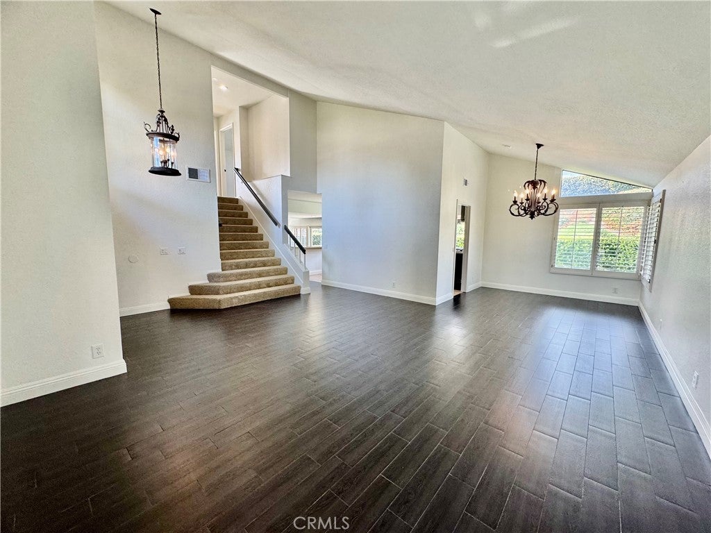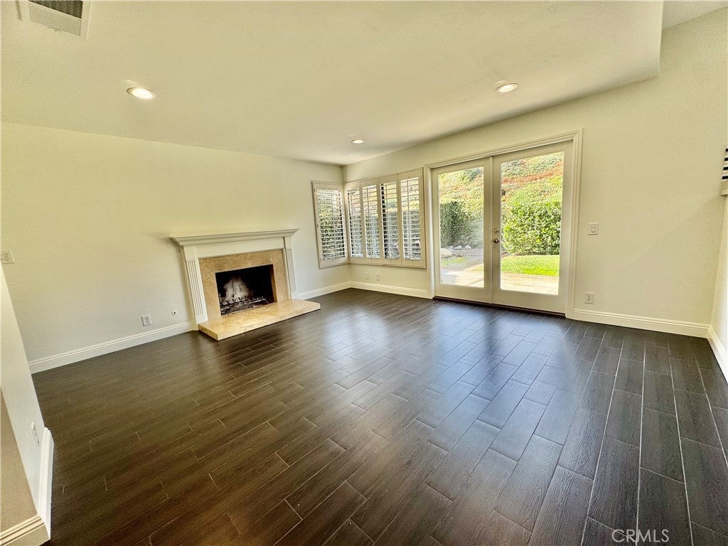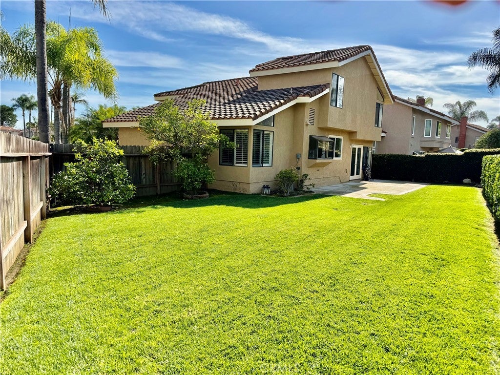 Beautiful home in the Signature Tract located on a private cul-de-sac. Spacious formal living room and dining room have cathedral ceiling. Highly upgraded kitchen you need to see to believe has a stainless steel microwave, oven, refrigerator, dishwasher, sink and faucet. Newer carpet, newer paint, newer cabinets and newer counters. Dark wood flooring placed in living room, dining room and family room add charm and elegance. Plantation shutters in Living Room and Dining Room. Recessed lighting, oversized baseboards, door casings, raised panel doors, mirrored closet doors and textured ceilings throughout. Primary Suite has volume in bedroom ceiling and step up feature to bath with separate shower/tub, walk in closet and tile flooring. Double sinks in both upstairs bathrooms. French doors in large, step-down family room lead to spacious, sun-drenched, private back yard. Crackling Fireplace in Family Room has marble face, marble hearth and wood mantel. All four bedrooms are upstairs and all are carpeted. Downstairs, indoor laundry room with window provides outside light/ventilation. 2 car direct access garage. Famous Lake Mission Viejo membership is included which means boating, fishing, swimming, concerts and outdoor fun. Conveniently located near Mission Viejo Mall/Shopping, Mission Hospital and access to and access to Freeway or Toll Road. Enjoy nearby Barbadanes Park.