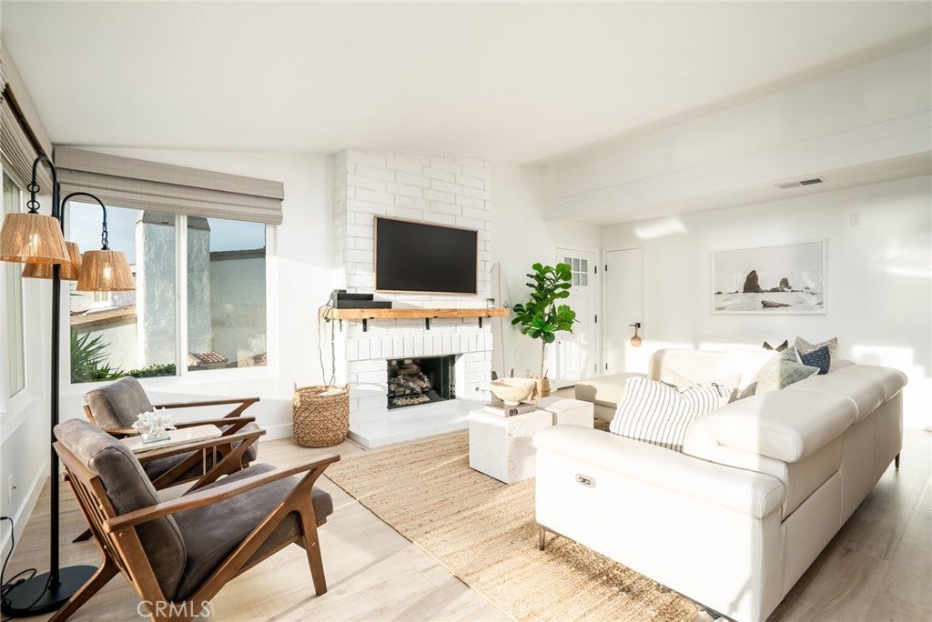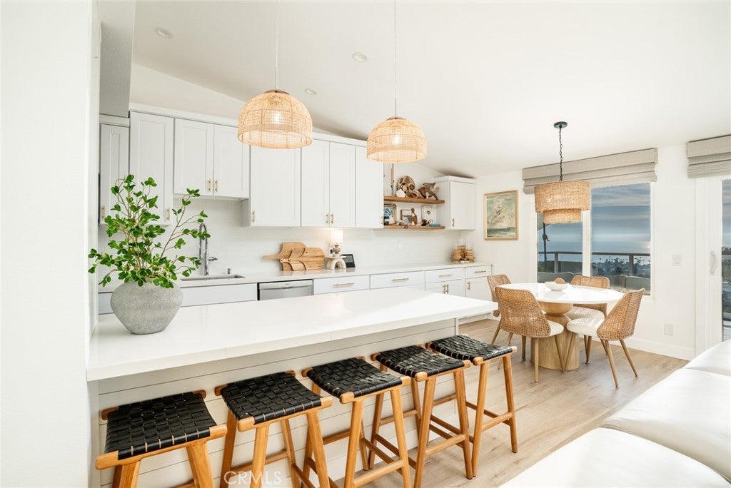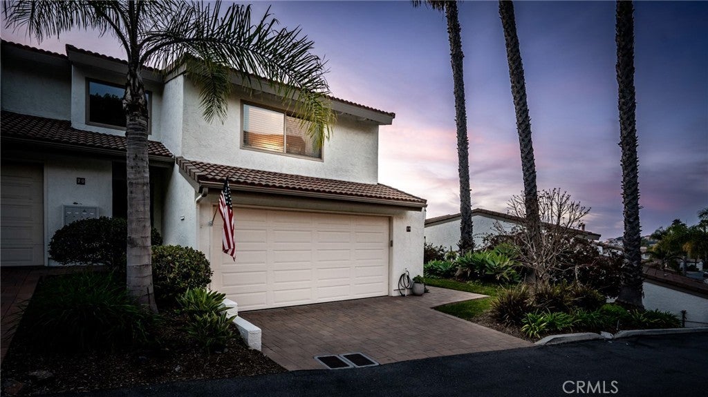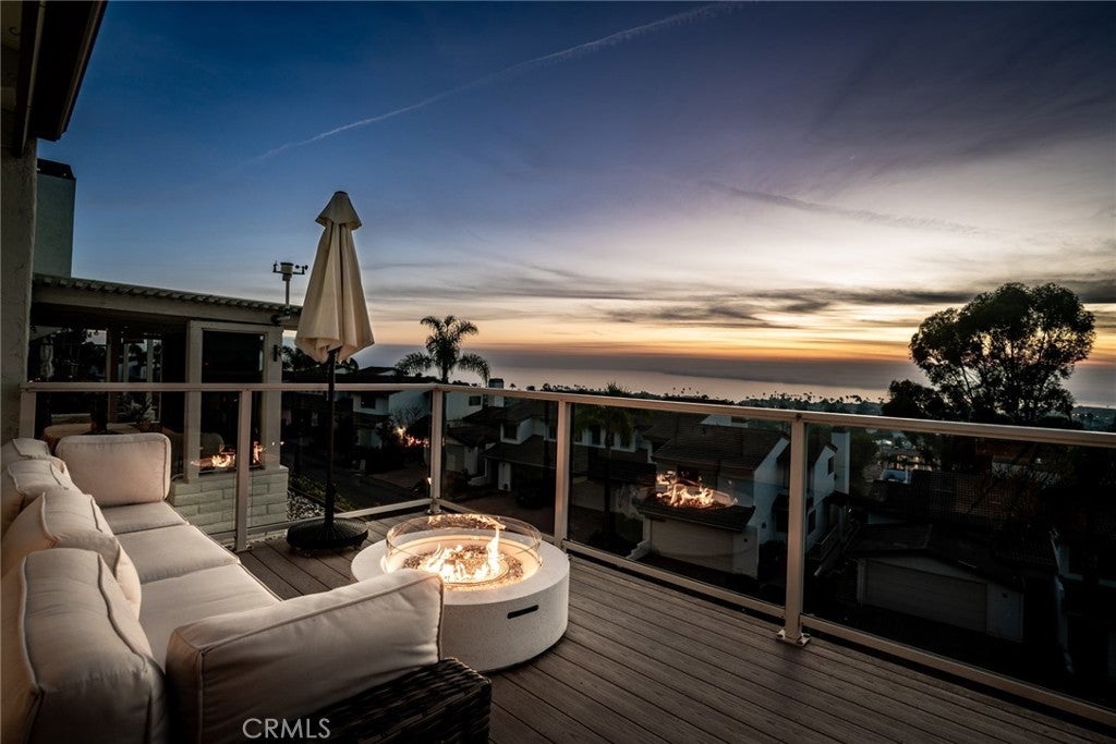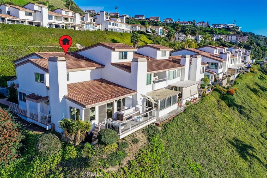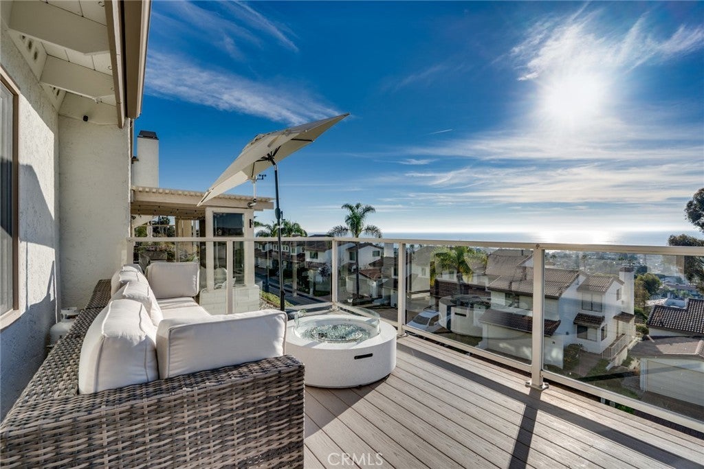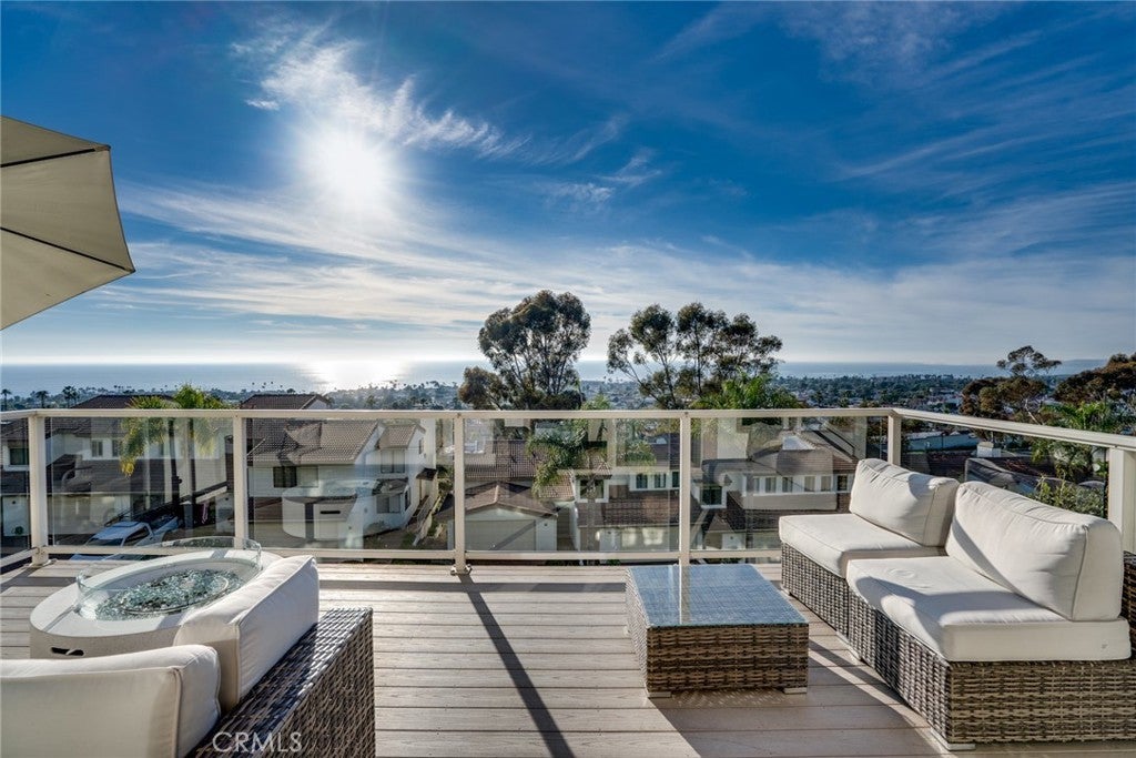 SIMPLY STUNNING! Enjoy expansive ocean, coastline, and harbor views from this beautifully updated end-unit residence in the Seaview Townhomes community of Southeast San Clemente. This two-level condominium offers approximately 1,571 square feet with three bedrooms and three bathrooms, thoughtfully remodeled to enhance both comfort and functionality. The main living level features a bright, open floorplan that seamlessly connects the living room, dining area, and kitchen, all oriented to capture sweeping ocean and coastline views. Large windows and sliding doors frame the scenery perfectly, while automatic window treatments provide privacy as desired. An expansive deck extends the living space outdoors, ideal for dining, entertaining, or enjoying coastal sunsets. The kitchen is well appointed with quartz countertops, stainless steel appliances, custom cabinetry, and generous counter seating. Extended countertop space and open shelving create a natural connection between the kitchen and dining area. Luxury vinyl wood plank flooring, recessed lighting, tile accents along the stairway, and updated fixtures are found throughout the home. A bedroom and bathroom with walk-in shower are conveniently located on the main level, offering flexibility for guests, a home office, or multi-generational living. The upper level includes a second bedroom, a full hallway bathroom, and a spacious primary suite. The primary suite features a dedicated sitting area, multiple windows providing abundant natural light, and generous storage including a walk-in closet plus two additional full closets. The en-suite primary bath offers a water closet, dual vanities and a walk-in shower with glass enclosure. Additional features include central air conditioning, an attached two-car garage with washer and gas dryer hookups, epoxy coating flooring and direct access. Community amenities include a pool, spa, and tennis courts. Conveniently located near downtown San Clemente, beaches, shopping, dining, and freeway access.
