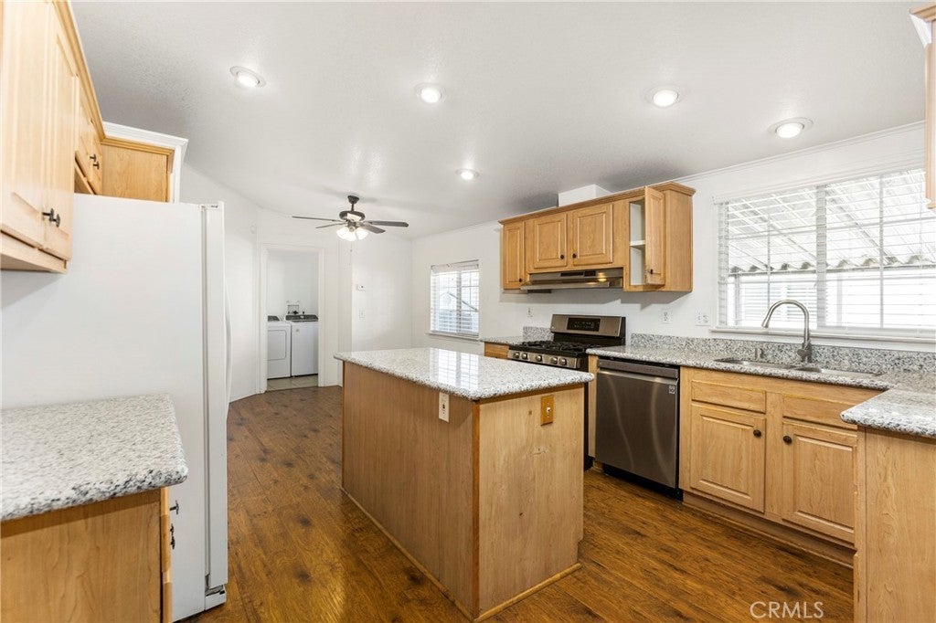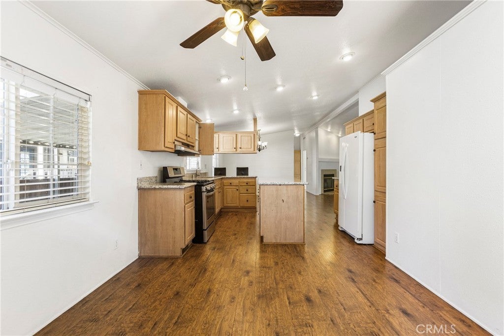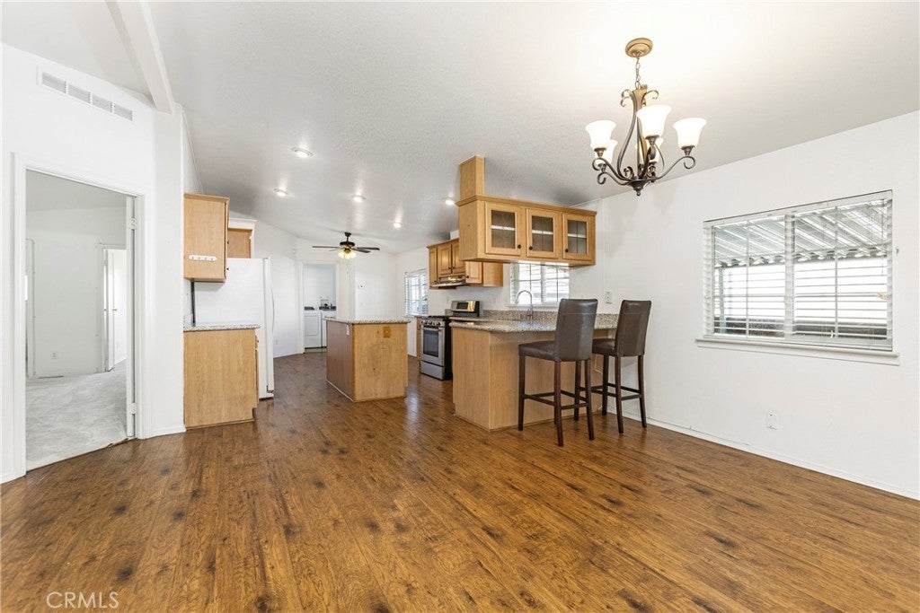 Located in a well-established community of Green River Village, this spacious manufactured home offers approximately 1,456 sq. ft. of comfortable living space with 3 bedrooms and 2 baths, surrounded by the rolling hills and open landscapes of Corona. The home features a bright, open floor plan with vaulted ceilings, a large living area with fireplace, a generous kitchen with ample cabinetry and center island, and a dedicated laundry room with exterior access. The primary suite includes a private bath with soaking tub and separate shower, while secondary bedrooms are well-sized and filled with natural light. Outside, a covered front porch, fenced yard, and corner-style lot provide inviting outdoor space and curb appeal. Conveniently located near Green River Golf Club, Hidden Valley Wildlife Area, and hiking and biking trails, with easy access to the 91 Freeway for commuting to Orange County or Riverside, this home offers a comfortable lifestyle in a peaceful yet well-connected Corona setting. Buyer to verify space rent, community amenities, and all property details.