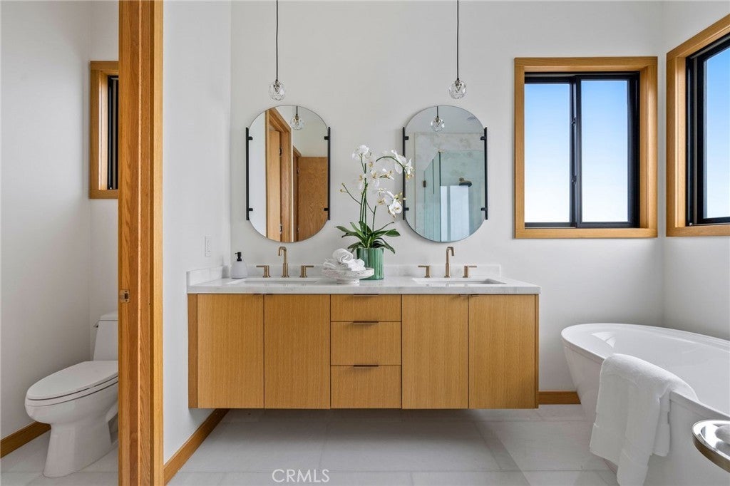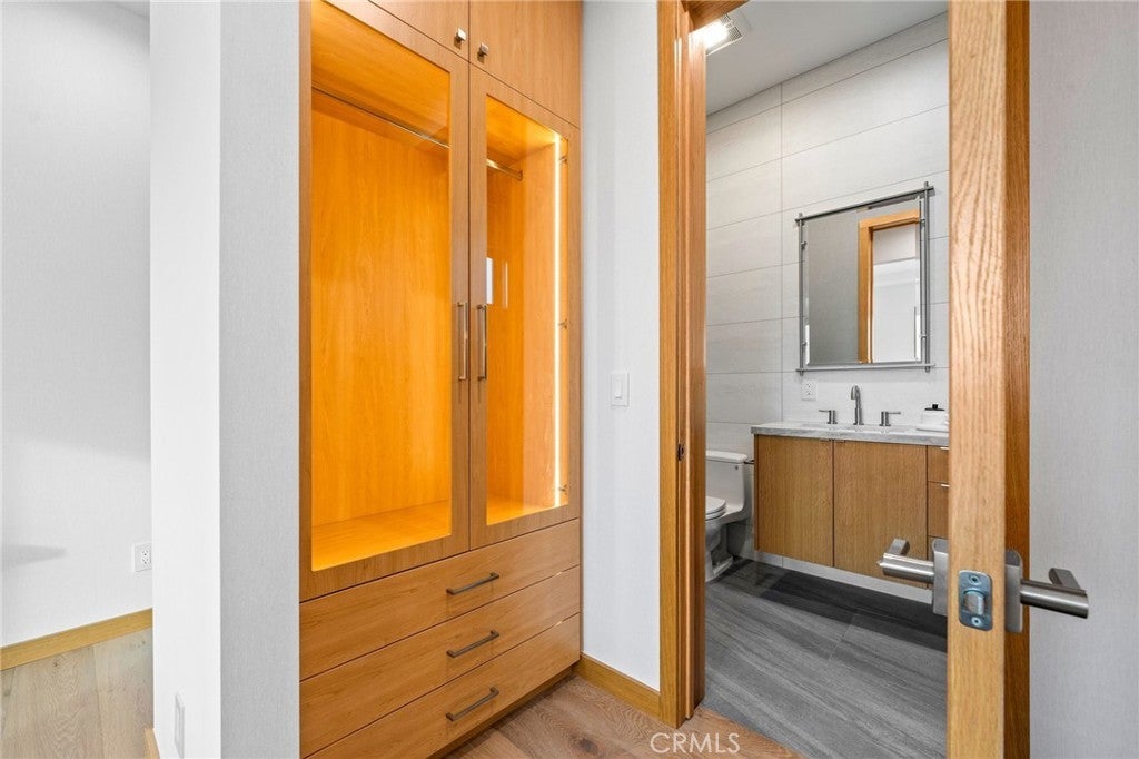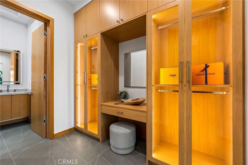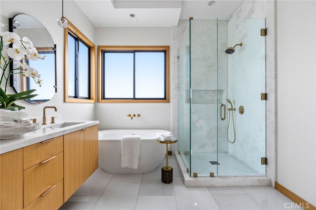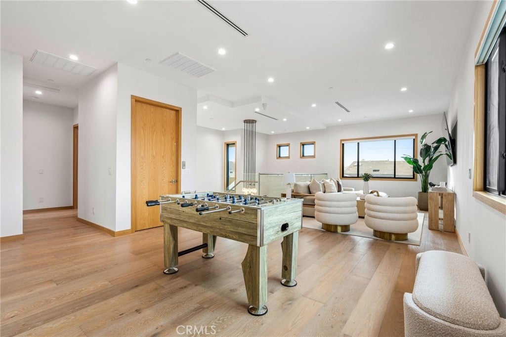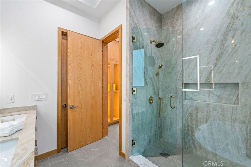 This newly completed Huntington Beach showpiece delivers a rare combination of contemporary architecture, elite craftsmanship, and an unbeatable Lake Park location just minutes from the coast, pier, Pacific City, and premier dining. Designed with intention and executed with exceptional materials and meticulous detailing, the residence opens through a custom pivot door into soaring volumes and a layout created for both refined daily living and elevated entertaining. Large-format tile and wide-plank engineered wood flooring flow throughout the main level, where formal and casual living spaces connect seamlessly to a designer kitchen anchored by professional Wolf and Sub-Zero appliances and dramatic stone surfaces. Custom bi-fold doors extend gatherings outdoors, while Restoration Hardware lighting, precision-built interior doors with German hinges, and integrated power shades underscore the home’s exacting level of finish. The home is anchored by a sculptural White Rhino marble staircase and private elevator, opening to a second-floor family lounge and open-to-below architectural feature. The primary suite commands its own wing, complete with walk-in dressing room and spa-inspired bath showcasing bookmatched Taj Mahal slab stone and floor-to-ceiling marble. Additional ensuite bedrooms are equally polished with Porcelanosa tile and custom details throughout. White Rhino marble staircases, a standing-seam metal roof, multiple climate zones, generous laundry room, and an oversized three-car garage with lift potential further elevate the home’s pedigree. A statement of modern coastal luxury built without compromise — this is a residence defined by materials, scale, and enduring quality in one of Huntington Beach’s most desirable neighborhoods.