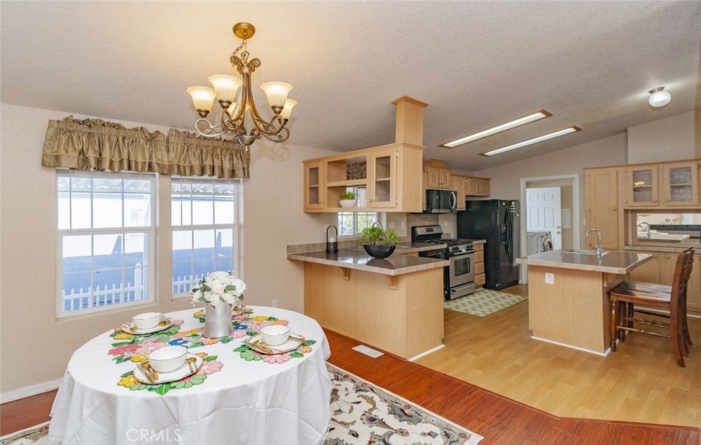 This home features a lovely large 4-bedroom-2 bath with a great flowing floor plan and an island kitchen layout. Enter the double door into the large living room and overflow into the kitchen. This double-wide home is Ideal for large family. Kitchen has been upgraded and lightly used, opening into dining area. It offers plenty of cabinet and counter space for all of your storage needs. Appliances included are Refrigerator, Dishwasher, Range/Oven, newer microwave and washer & gas dryer hook ups in separate utility rooms. Laminated flooring throughout the entire home with lots of windows makes the home feel light and fresh! Spacious master bedroom includes upgraded shower and vanity. spacious bedrooms, guest bathroom with tub/shower. Central A/C and heating. Carport offers 3 car parking, also great to use for entertaining. With recent upgrades, this home is ready to create new memories with you. There's an oversized community swimming pool, large club house hold up to 300 guests, pool table, kitchen and seating area in community provided for residence. It is conveniently located with easy commuting options—near the Orange/Anaheim city border, close to shopping, dining, schools, and major attractions like Disneyland, close to local shops, dining, and entertainment.