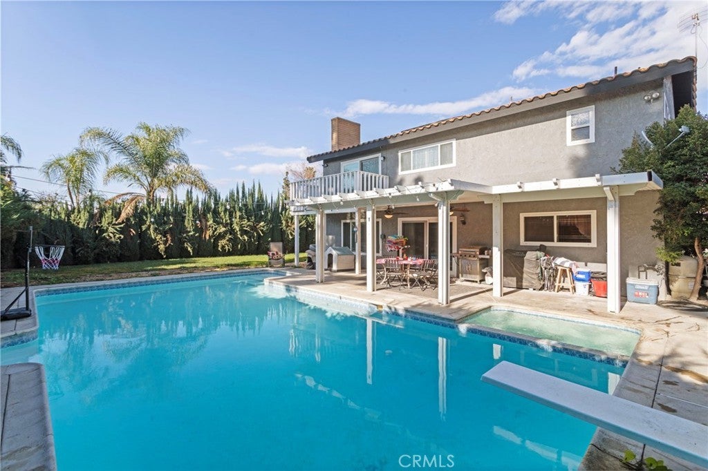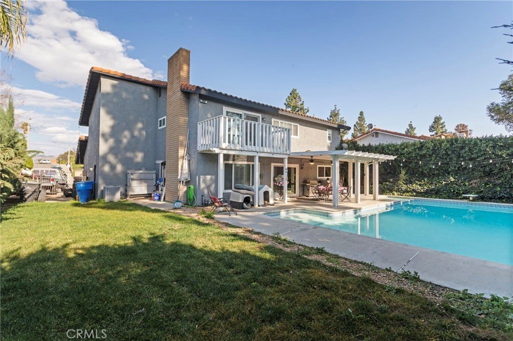 Beautiful Canyon Crest Home with Large Formal living room Vaulted Ceilings, Dining room with direct access to kitchen and upgraded tile flooring, upgraded kitchen with beautiful cabinets and granite counters, Family room with fireplace, nice Bar area for entertaining, Beautiful spacious primary bedroom with sitting area and fireplace, walk in closet, sitting deck off Primary with view of city lights, Alumna Patio with two ceiling fans, nice size backyard with large in ground Pool and Spa lots of fun for the kids, 3 car garage, RV parking.