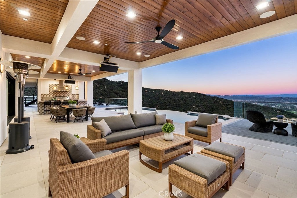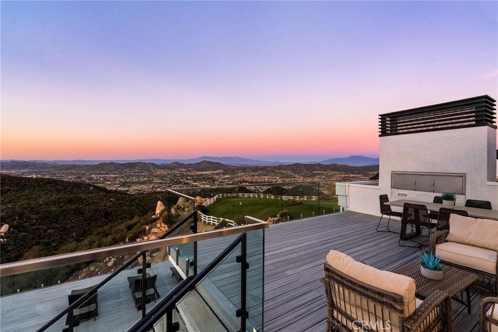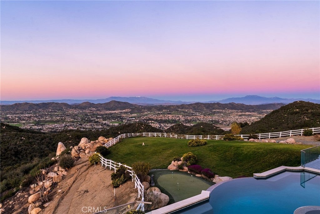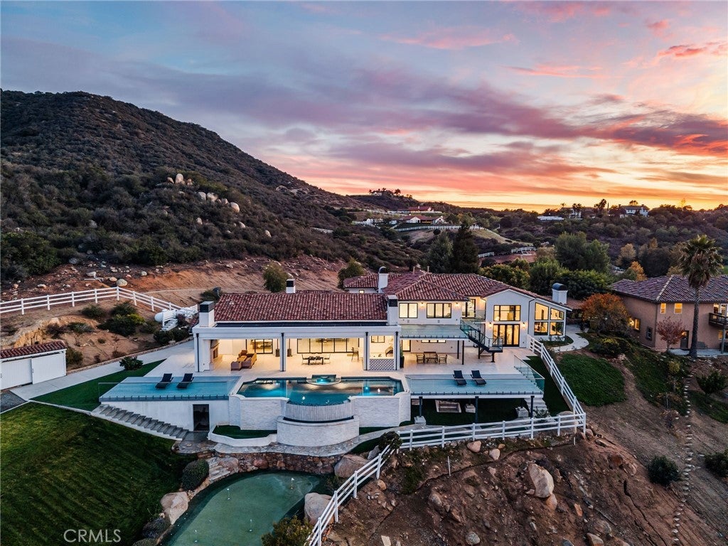 Set across an extraordinary 21 acres, you’ll find the “one-of-a-kind” Golden Crest Ranch Estate and Golden Oaks Park, located in the prestigious La Cresta enclave with minimum 5-acre parcels. A rare combination of commanding scale, privacy, and breathtaking, unobstructed panoramic views that are truly unmatched. At the heart of the property lies Golden Oaks Park, a private recreational sanctuary among lush landscape, ancient oaks and mature trees, featuring a tennis court w/pavilion, outdoor fireplace, shuffleboard, horse shoe pit, 3-hole par-three golf circuit, cowboy fireside camp, round pen, citrus grove, and scenic overlook woven together by meandering paths that pass by a flowing stream, pond and waterfall with seating areas for peaceful reflection. The gated estate is positioned on a knoll with sweeping vistas across rolling hills, cool breezes and open sky, consisting of 8550 square feet with 7 beds/9 baths including a separate 3 bed/1 bath guest house of 1950 sf. The main house was completely renovated in 2022 with no expense spared. Featuring a Great Room, gourmet kitchen, office, gym, home theater, wine storage and a series of elegant living spaces enhanced by 5 fireplaces, soaring beam ceilings, and walls of glass opening through bi-fold doors to bring the landscape indoors. The grounds are a private resort with infinity pool, spa, putting green, outdoor kitchen, covered pavilion with heaters, outdoor fireplace lounge, and more than 2500 sf of expansive decks and covered terraces for grand-scale entertaining. The estate unfolds into a vast canvas with extraordinary potential for equestrian trails, vineyards, orchards, supported by an existing barn with infrastructure to accommodate up to 10 horses. Adding to the mystique, locals tell stories this property was once home to a vibrant gold mine during California’s early mining era. While the original mine was never formally documented and is believed to have been abandoned long ago, the legend persists— the pool service still reportedly discovers flecks of gold in the pool’s filtration system. The property is further enhanced by a large owned solar field, dual water sources (city and well), offering long-term self-sufficiency and cost savings. Featuring a 6 car over-sized garage. With the exceptional infrastructure, this is not simply a home, but a once-in-a-generation family compound offering scale, views, privacy, lifestyle, and future memories without compromise. Add'l adjacent land available.
