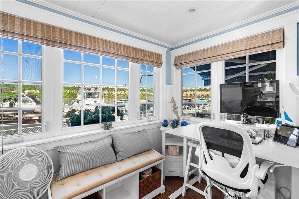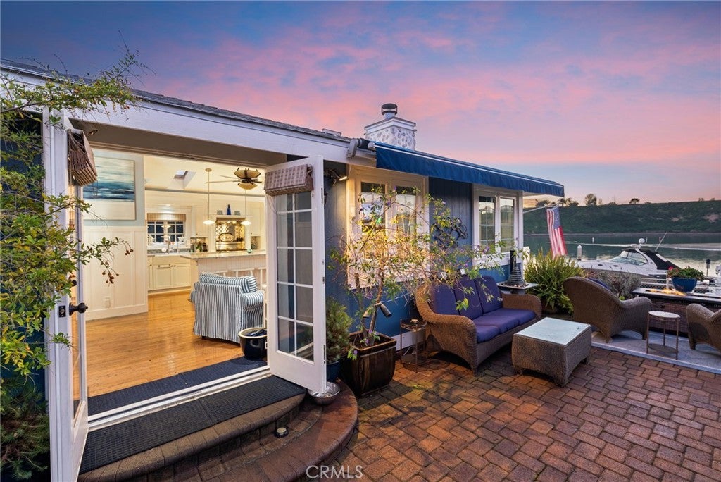 Waterfront living at an exceptional price under $1.2 million! This beautifully positioned, single-level waterfront home was thoughtfully remodeled in 2023 and located within one of Newport’s most desirable manufactured home communities, Bayside Village. The home offers a true waterfront lifestyle, including a transferable 50’ private dock directly in front of the home, at a fraction of the cost of traditional bayfront real estate. Walk outside, untie, and cruise Newport Harbor within minutes with access to dining, fishing, beaches and the open Pacific. Situated directly on the water in Newport’s Back Bay, the home captures panoramic bay and sunset views. Inside, the home is bright, open, and inviting, with vaulted ceilings, skylights and a waterfront gourmet kitchen featuring a Quartz center island and Thermador appliances. The kitchen flows naturally into the living room, anchored by a stone fireplace and French doors that open to a large stone patio overlooking the bay. Hardwood floors, designer tile and remodeled bathrooms enhance the coastal aesthetic while maintaining a relaxed, livable feel. Expansive windows frame the water from multiple vantage points, filling the home with natural light and bay breezes. Outdoor living is abundant with an expansive waterside patio, ideal for sunset dinners, fire-pit gatherings, morning coffee or entertaining friends as boats pass by. An electric retractable awning provides shade when desired. The home is located on leased land within a well maintained waterfront community, currently $6,000 per month, offering a compelling financial advantage. There are no traditional property taxes and no HOA dues, significantly reducing overall ownership costs. Optional dock privileges are available at $3,450 per month, along with a 10’ X 20’ garage for $575 per month. Dedicated 2 car parking may be upgraded to a covered carport for approx. $9,800. Community amenities include a remodeled clubhouse, bayfront pool/spa, BBQ area, dog park, fitness center, billiards room and private beach. The location offers convenient access to Balboa Island, Newport Dunes, exceptional dining, shopping, and the Back Bay Nature Preserve. Whether as a full time residence, weekend escape, or a watercraft focused lifestyle, this home delivers what matters most. Furnishings and 40' Silverton Motor Yacht in the slip is available for purchase separately. Arrive with your essentials and step directly into waterfront living and lifestyle at your front door!