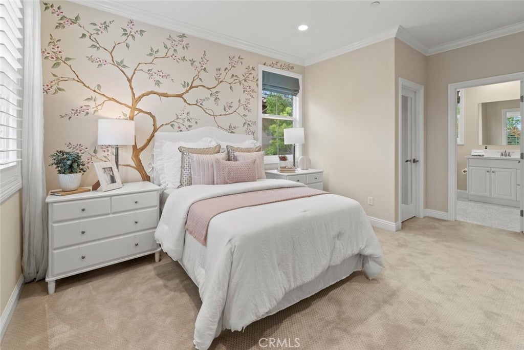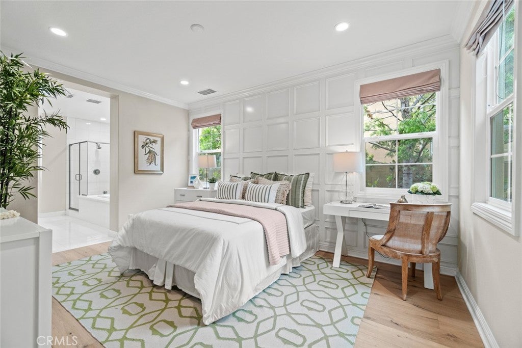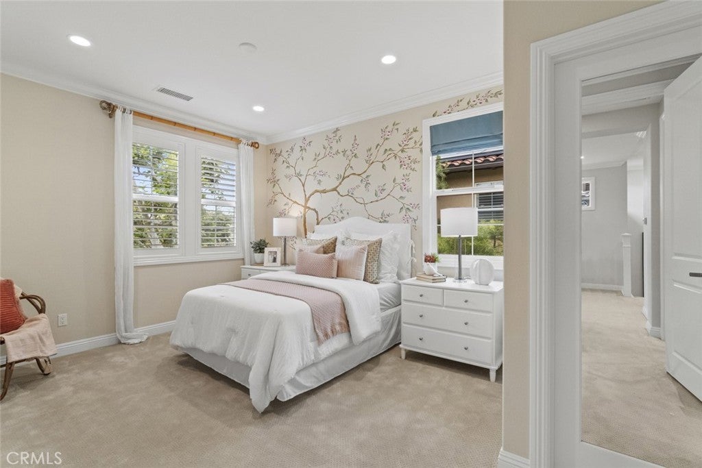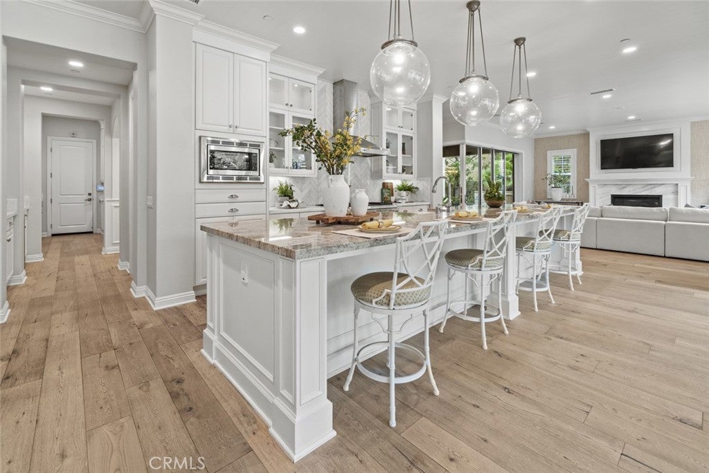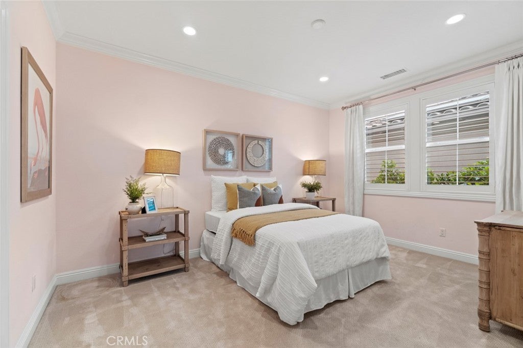 Welcome to 208 Radial, Irvine — a stunning former model home located in the prestigious Great Park community. This beautifully designed residence features high-end upgrades throughout, including custom lighting, window treatments, wall paneling, wainscoting, and a state-of-the-art alarm and speaker system. The home’s interior exudes elegance with custom paint and thoughtful electrical enhancements. The main floor offers a junior master bedroom with a full bath, perfect for guests or multi-generational living. The gourmet main kitchen is equipped with top-of-the-line Thermador stainless steel appliances, upgraded granite countertops, a custom backsplash, and white raised panel cabinets. In addition, the home is thoughtfully designed with a separate enclosed secondary kitchen (spice kitchen), ideal for heavy cooking while keeping the main living areas fresh and pristine. Luxurious finishes continue in the primary suite, featuring marble slab upgrades in the master bath. The flooring throughout the home includes a blend of stone, wood, and carpet in designated areas, adding warmth and style. Step outside to the professionally landscaped front and back yards, where you'll find an outdoor BBQ, fire pit, and a tranquil courtyard fountain — perfect for entertaining or relaxing. As a resident of the Great Park community, enjoy access to premier amenities, including the five-acre Great Lawn, a resort-style pool and spa, sports courts, an outdoor kitchen, and recreational trails. The location offers convenience with direct access to Great Park facilities and inclusion in the highly acclaimed Irvine Unified School District, featuring the future Beacon Park K-8 School and Portola High School. This exceptional home blends luxury, comfort, and convenience in one of Irvine’s most sought-after neighborhoods. Don’t miss the opportunity to make it yours!