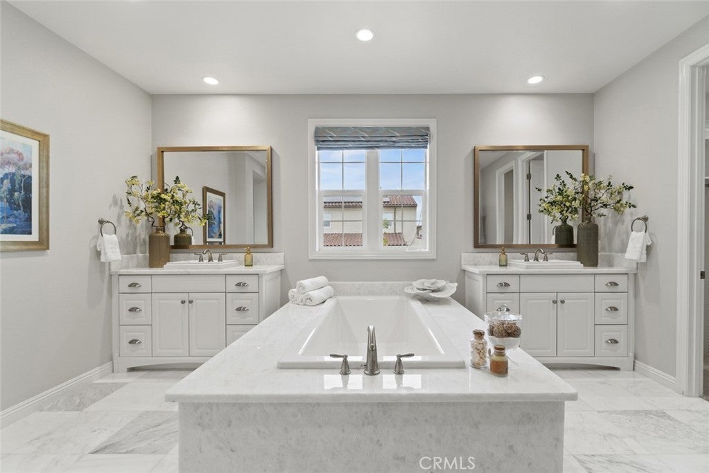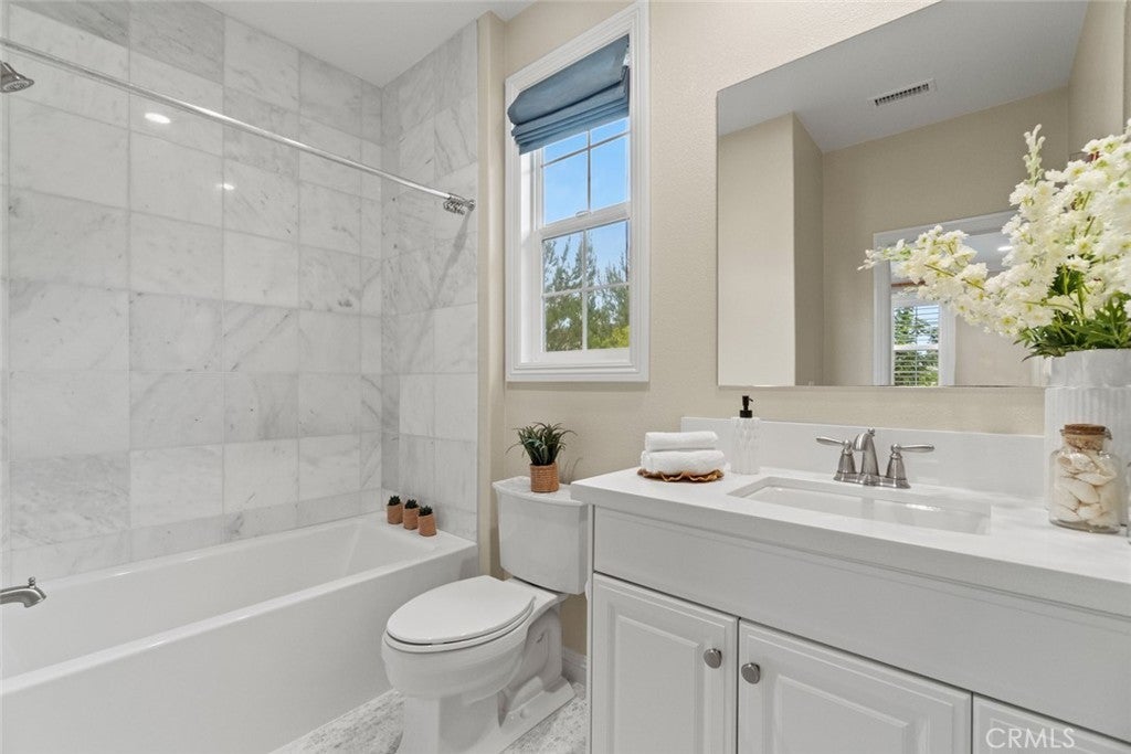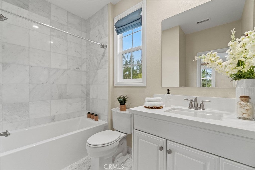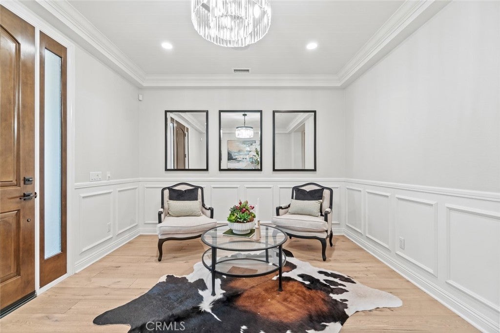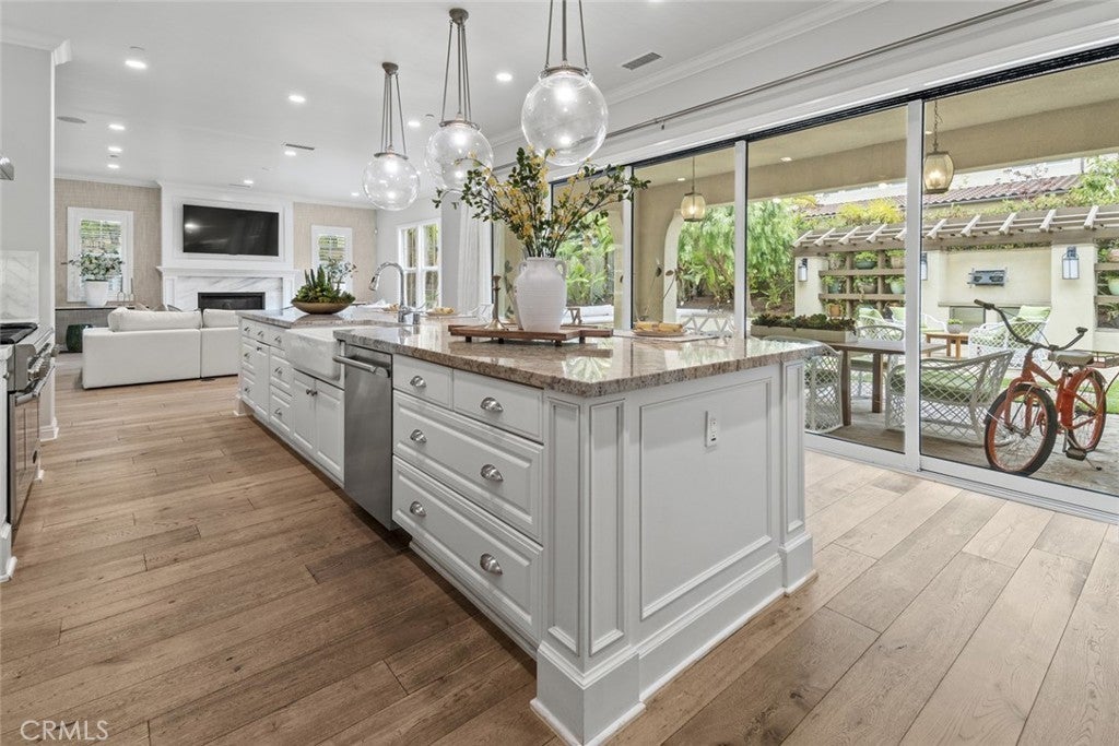 Welcome to 208 Radial, Irvine — a stunning former model home located in the prestigious Great Park community. This beautifully designed residence features high-end upgrades throughout, including custom lighting, window treatments, wall paneling, wainscoting, and a state-of-the-art alarm and speaker system. The home’s interior exudes elegance with custom paint and thoughtful electrical enhancements. The main floor offers a junior master bedroom with a full bath, perfect for guests or multi-generational living. The gourmet main kitchen is equipped with top-of-the-line Thermador stainless steel appliances, upgraded granite countertops, a custom backsplash, and white raised panel cabinets. In addition, the home is thoughtfully designed with a separate enclosed secondary kitchen (spice kitchen), ideal for heavy cooking while keeping the main living areas fresh and pristine. Luxurious finishes continue in the primary suite, featuring marble slab upgrades in the master bath. The flooring throughout the home includes a blend of stone, wood, and carpet in designated areas, adding warmth and style. Step outside to the professionally landscaped front and back yards, where you'll find an outdoor BBQ, fire pit, and a tranquil courtyard fountain — perfect for entertaining or relaxing. As a resident of the Great Park community, enjoy access to premier amenities, including the five-acre Great Lawn, a resort-style pool and spa, sports courts, an outdoor kitchen, and recreational trails. The location offers convenience with direct access to Great Park facilities and inclusion in the highly acclaimed Irvine Unified School District, featuring the future Beacon Park K-8 School and Portola High School. This exceptional home blends luxury, comfort, and convenience in one of Irvine’s most sought-after neighborhoods. Don’t miss the opportunity to make it yours!