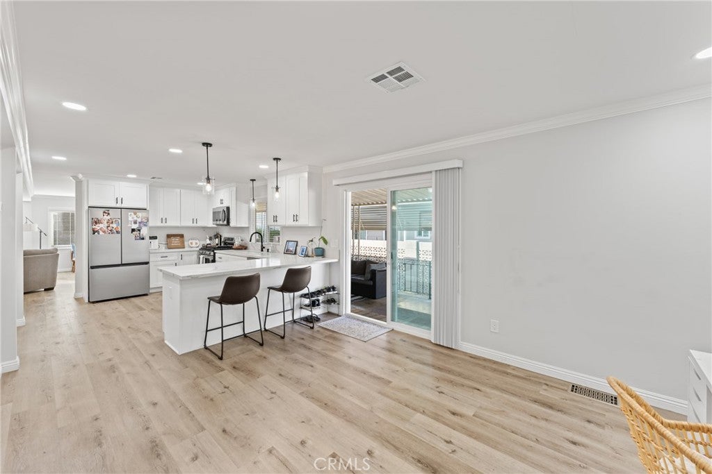 Beautifully remodeled and truly move-in ready, this stunning 1,440 sq. ft mobile home offers the perfect blend of modern upgrades and serene surroundings. Featuring 2 spacious bedrooms and 2 full bathrooms, the thoughtfully designed layout provides comfort, functionality, and ample space for relaxing or entertaining. The interior has been completely renovated, showcasing new drywall throughout, updated plumbing and fixtures, recessed lighting in every room, and stylish vinyl plank flooring. Elegant crown molding, 5-inch baseboards, and wood blinds add a refined touch, while the bright kitchen shines with timeless shaker cabinetry designed for both beauty and everyday convenience, complete with a stainless steel appliances and lets not forget the large wonderful pantry. Enjoy year round comfort with central air conditioning and heating, the convenience of side-by-side parking, and unwind on the covered side patio. Perfect for morning coffee or peaceful evenings. Ideally located next to a tranquil greenbelt, the home offers scenic views and a sense of privacy, while being just steps from the clubhouse, pool, spa, gym, and lake. Situated in Lake Park Yorba Linda, one of North Orange County’s most highly rated 55+ communities, residents enjoy a quiet, resort-style setting with plenty of community activities or the option for easy, peaceful living. The location is within walking distance to shopping and dining and offers convenient access to major freeways. A beautifully upgraded home in a prime location where comfort, style, and serene living come together. This is one you must see!