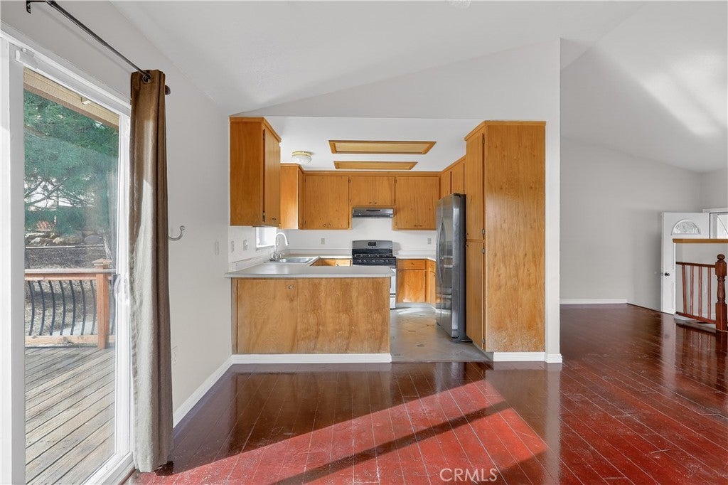 Four-bedroom, three-bath single-family residence located on a cul-de-sac in the Kelseyville Riviera community. The main level features an open living and dining area with a peek-a-boo lake view, kitchen with stainless steel appliances, and primary bedroom with ensuite bath. Lower level includes an additional bedroom, bathroom, and bonus room with a separate entrance. Exterior features include decking, patio space, an above-ground pool, finished shed, and landscaped yard. Property offers driveway space suitable for RV or boat parking. Conveniently located near schools, shopping, dining, and Clear Lake.