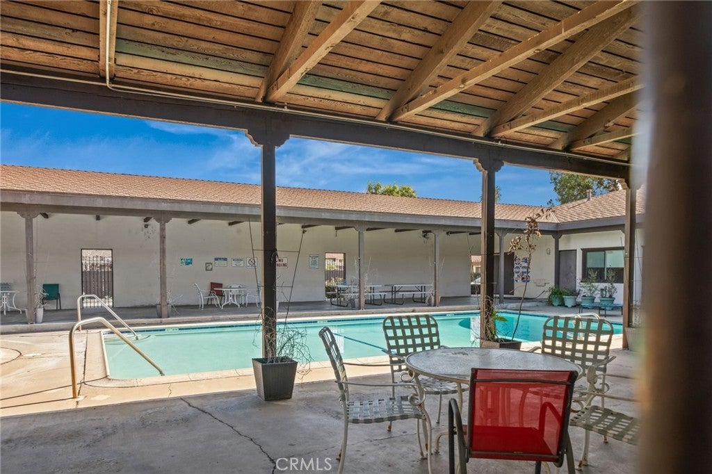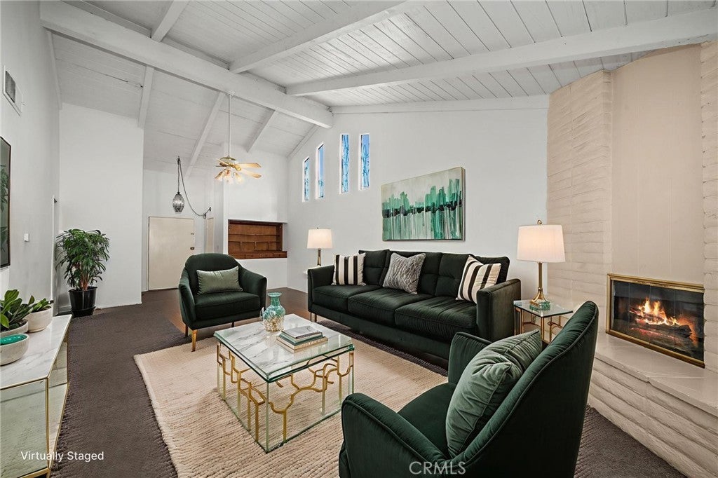 This inviting condo offers approximately 1,385 square feet of comfortable living space with two bedrooms and two bathrooms, blending classic charm with functional design. Inside, you’ll find a spacious living area highlighted by vaulted ceilings, abundant natural light, and a cozy fireplace that anchors the room. The kitchen features generous cabinetry, ample counter space, and a layout that flows easily into the dining and living areas—ideal for everyday living or entertaining. Both bedrooms are well-proportioned, with the primary suite offering an en-suite bath and plenty of storage. Additional highlights include a private enclosed patio that extends the living space, thoughtful built-ins, and a layout that balances openness with privacy. Conveniently situated near shopping, dining, major freeways, and local attractions, this condo presents an excellent opportunity to enjoy comfort, space, and accessibility in a well-established community.