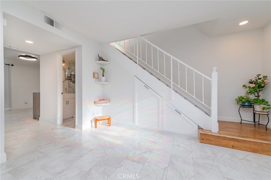 Welcome to this delightful townhome nestled in the highly sought-after Woodbridge neighborhood of Irvine. A comfortable and convenient living experience with its 3 bedrooms and 2 bathrooms. Wood flooring and tile on the first floor, Living room with a warm fireplace. Open kitchen with a delightful nook. Next to kitchen with walk-in pantry and laundry. Upstairs spacious master bedroom offering a tranquil retreat. Two more bedrooms and a hallway bathroom, providing ample space for family, guests, or a home office. Step outside kitchen to the back private courtyard, storage closet. Two designated covered parking spots right off back fence door, ensuring electric car charging connections. Woodbridge is renowned for its central location, offering proximity to a wide range of community amenities, shopping centers, renowned restaurants, and exceptional schools. Commuting is a breeze with easy access to the nearby 405 freeway. Moreover, this condo enjoys the closest proximity to the Blue Lake Swim Club, known for being the nicest pool in the neighborhood. Open 24 hours and offering amenities such as wifi, a diving board, a junior Olympics pool, a baby pool, and a Jacuzzi, the Blue Lake Swim Club promises endless aquatic enjoyment for residents. Additionally, Blue Lake Park is where association camps and sports activities take place, adding to the community's vibrant and family-friendly atmosphere.