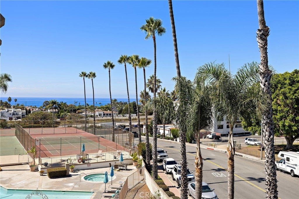 Perched on the top level of the Ocean Fairways community, this upgraded two-bedroom, two-bath home offers 1,326 square feet of single-level living and a rare vantage point over the lush fairways of the San Clemente Municipal Golf Course, with glimpses of the ocean beyond. Large windows and a spacious covered balcony draw in light and capture the home's tranquil setting. Inside, a modern concrete fireplace with custom mantel anchors the open living area. The kitchen combines quartz countertops, subway tile accents, ample cabinetry, and breakfast-bar seating for effortless everyday use. The primary suite enjoys wide golf course views, a generous closet, and an updated bathroom with double vanity and walk-in shower. A secondary bedroom and full bathroom complete the layout, while a dedicated laundry closet adds everyday convenience. Residents enjoy a private, gated community with countless amenities — pool, spa, tennis courts, recreation lounge with kitchen and fireplace, fitness rooms with saunas, and secure building access. HOA dues include water, cable TV, sewer, trash, insurance, and exterior maintenance — offering exceptional value and low-maintenance living. The location is a standout. Set directly across from the San Clemente Municipal Golf Course, the home also offers easy access to Vista Bahia Park and San Luis Rey Park for outdoor recreation. Plus, it’s only .9 miles to Calafia Beach, 1.6 miles to downtown San Clemente, and a short ride to Trestles, one of Southern California’s most coveted surf breaks. Golf cart and e-bike accessibility make it simple to reach beaches, parks, shops, and dining, while the community’s price point offers a more attainable way to enjoy the coveted coastal lifestyle San Clemente has to offer.