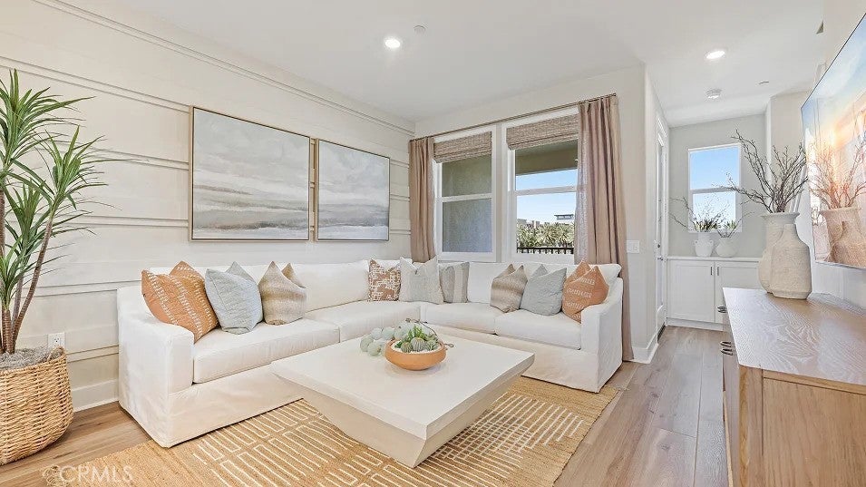 Residence 1 plan with private front courtyard leads you to the entry of this beautiful 3 bedroom, 2.5 bath, 3-level town home! A flex space on the first floor can be used as an office. Kitchen open to Dining and living room areas, includes an island perfect for entertaining, along with a walk-in pantry, quartz countertops, white cabinets and GE Profile stainless steel appliances, including the refrigerator! The Great Room is a perfect area to relax with a door that leads to a covered deck for you to enjoy the outdoors! The Owners Suite is spacious with a walk-in closet on the 3rd level, along with the other secondary bedrooms. Comes with Lennar’s everything included features such as soft close drawer’s LED lighting, 5 1/2" baseboards, Ring doorbell, Schlage Smart WIFI deadbolt, tankless water heater & dual glazed windows with high performance low-E glass are also included! Located in A-town where nearby is Angel Stadium, Honda Center, Disneyland and many restaurants! The upcoming OC Vibe is currently under construction, which is Anaheim's 95-acre, project including hotels, restaurants and open space! Don't miss out on this wonderful location