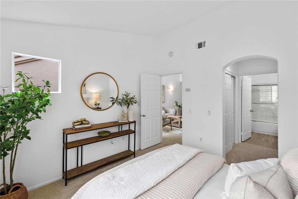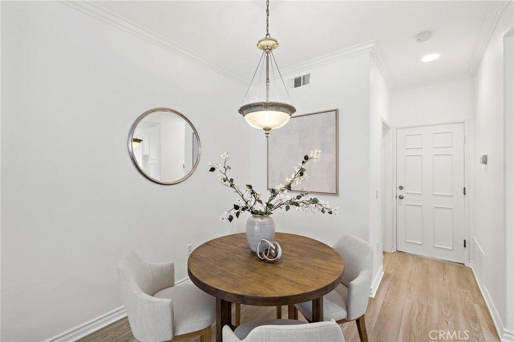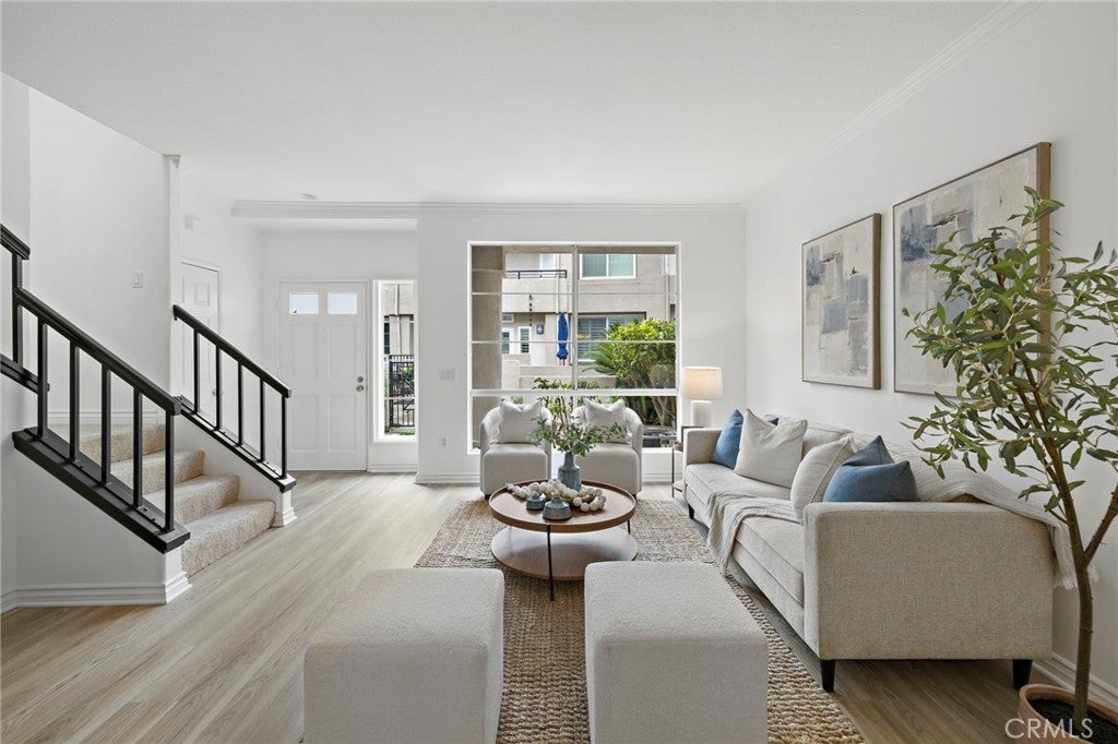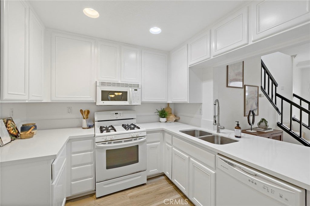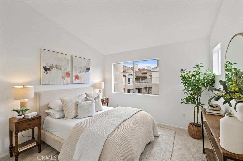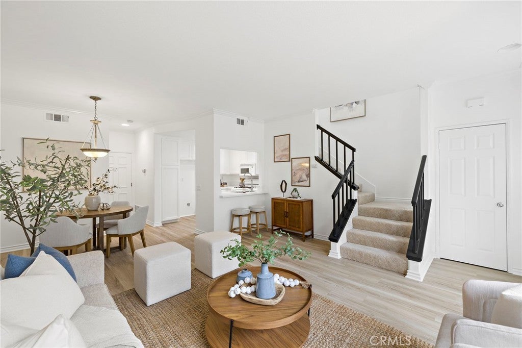 Welcome to 15 Windchime, located in the sought-after South Orange County community of Aliso Viejo. This remodeled 2 beds and 3 baths in GATED Aliso Viejo community. Enjoy this completely REMODLED, 1291-square-foot home, with updated interior which includes all new interior paint, both full bathrooms remodeled with designer tiles, kitchen remodeled with quartz countertops, fresh paint on cabinets, wide plank tan luxury vinyl flooring, and new tan carpeting. This is a popular layout with a large patio/gate entryway, into a spacious living room with oversized windows. Dining room and kitchen open to living and dining room. Powder room is half bath on first level, and attached two car garage with laundry in garage area. Upstairs has an added BONUS ROOM with fireplace and mantel for additional living area, office, along with attached second Patio. the Primary bedroom is open and bright with sliding closet, large windows and area for a workspace or retreat. The secondary bedroom and private bath with a step-in tub and single sink. This tract has easy parking, pool, spa, sport courts, playground, scenic biking trails, easy access to freeways, close to beach areas. Exceptional shopping and entertainment within a mile, and close to many great venues. Windsong is one of the nicest locations in and around the Aliso Viejo area.