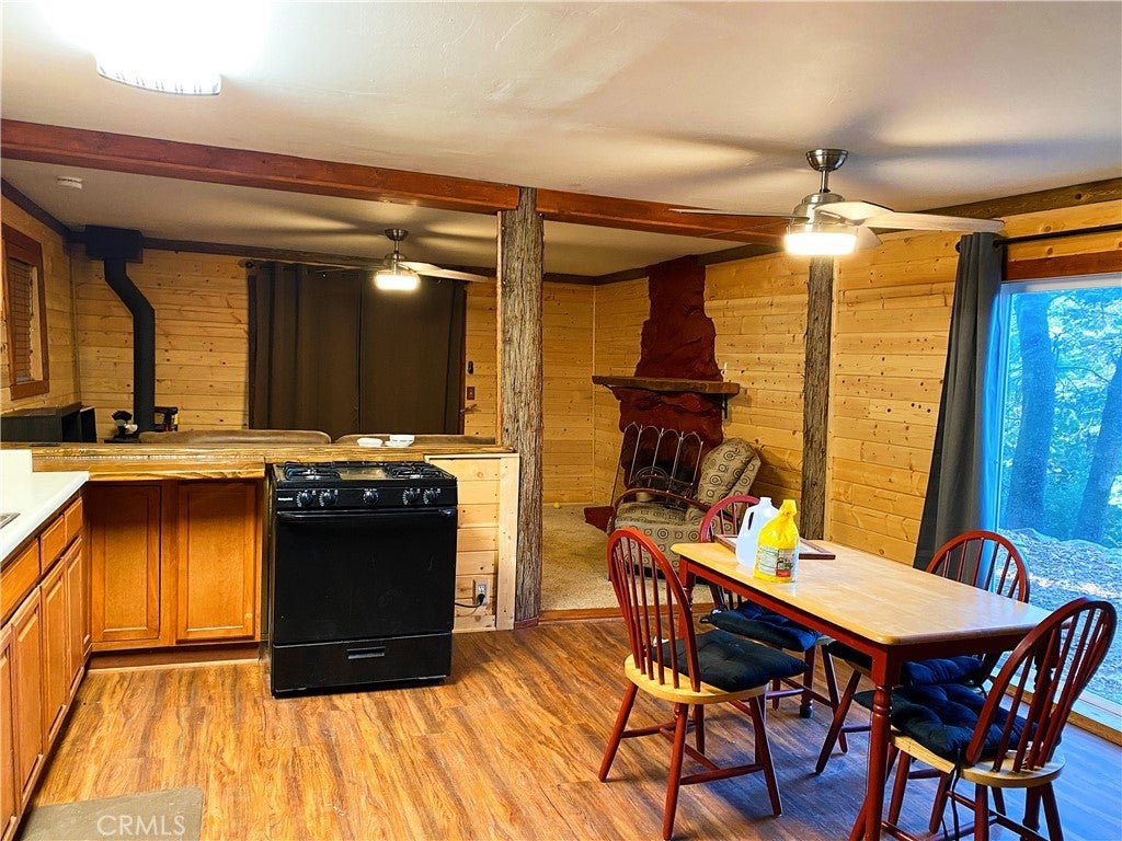 Breakfast Bar, Ceiling Fan(s), Eat-in Kitchen, Storage, All Bedrooms Down, Bedroom on Main Level, Main Level Primary, Laminate Counters, Wood Product Walls