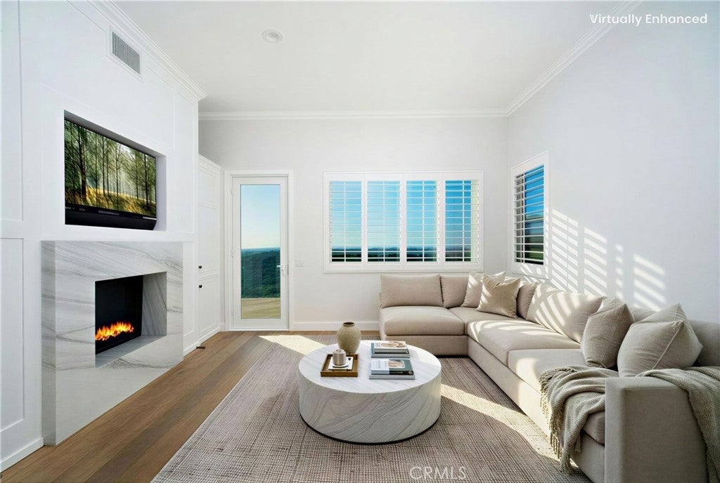 Experience the rare opportunity of unparalleled refinement in this meticulously upgraded estate, formerly the neighborhood’s model home, showcasing one of the city’s most exquisite panoramic views. Perched high within the prestigious gates at the top of Prospect Hill, you will be graced with a full view of Orange County from the backyard, living room, dining room, kitchen, and primary suite. Beyond the threshold, luxury is defined by the bespoke stone hearth, dual-sided glass fireplace, and the organic warmth of DuChateau European white oak flooring that flows seamlessly through an open, light-filled floor plan. Whether hosting an intimate dinner or a grand soirée, the interior transitions effortlessly to the outdoors through expansive glass doors, where sweeping canyon vistas and cooling breezes create a serene backdrop. The culinary kitchen is fully equipped with professional-grade stainless steel appliances and a wine refrigerator, while the integrated Aquasana whole-house filtration system ensures a wellness-focused environment. The primary suite serves as a private sanctuary, featuring a spacious walk-in closet and a refined en-suite bathroom complete with a deep soaking tub for ultimate relaxation. A rare main-level bedroom suite offers convenience for guests, while the three-car garage provides ample space for the motoring enthusiast. Located moments from the renowned Orange Hill Restaurant and offering effortless access to major corridors, this residence isn't just a home… it is a private retreat for the discerning few.