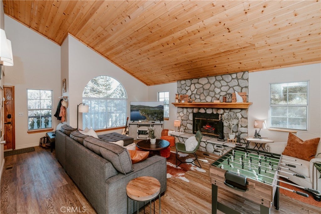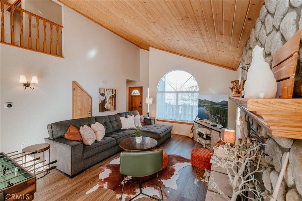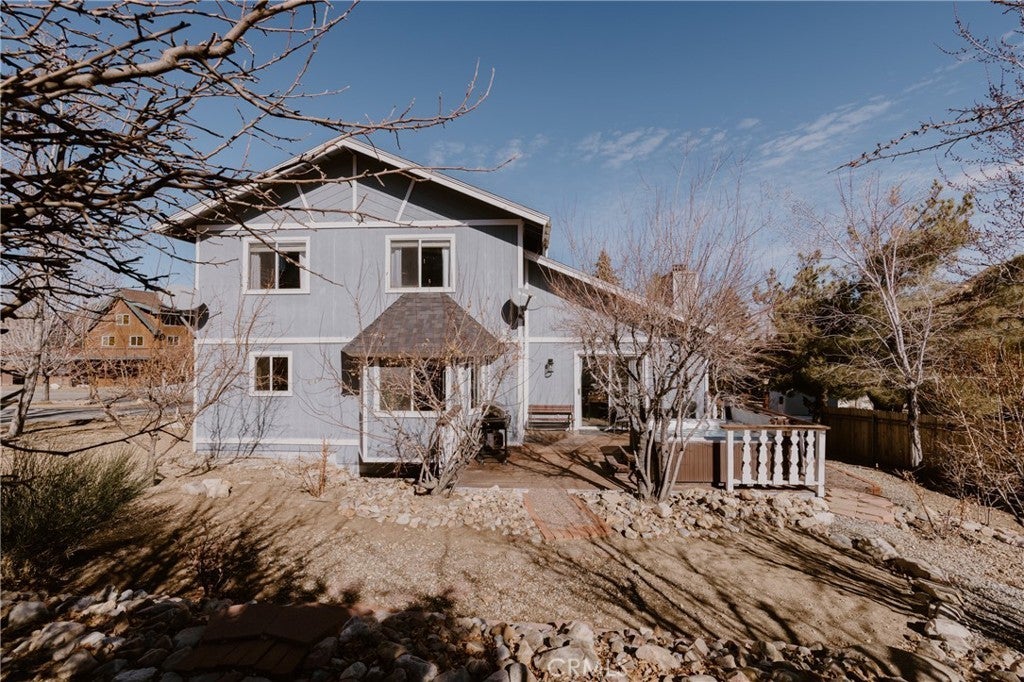 Located near the desirable Maple Ridge area, this fully furnished 3-bedroom, 2.25-bath mountain home offers a rare combination of comfort, functionality, and year-round accessibility with City Snow-Plow service. The light-filled interior features an inviting layout with multiple gathering spaces, while the spacious primary suite includes vaulted ceilings, dual walk-in closets, and a private balcony with mountain views. Tastefully updated kitchens, bathrooms and a cozy fireplace. Outdoor amenities include a Private Hot Tub and a large backyard with mature fruit trees, including three types of apple trees, a pear tree, and a sugar plum tree, creating a unique mountain setting. Additional features include an oversized Attached 2 Car Garage and RV Parking. Conveniently located near Bear Mountain Ski Resort, golf course, hiking trails, the zoo, and local shopping and dining. Ideal for full-time living, second home use, or vacation rental (buyer to verify with local regulations).