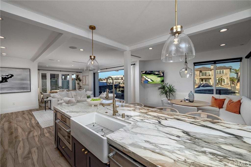 Spectacular Waterfront Luxury on the Coveted “Ocean Side” of Huntington Harbour Welcome to this exceptional waterfront residence on the highly sought-after Grimaud Lane — one of only 22 exclusive homes on this prestigious street. This completely remodeled and upgraded masterpiece offers an unparalleled blend of coastal elegance, resort-style living, and modern sophistication. Featuring an expansive 60-foot waterfront terrace with a private boat dock, this home is the ultimate haven for luxury living and entertaining. Every inch has been meticulously designed with designer finishes, including marble, quartzite, and porcelain tile flooring, creating an atmosphere of timeless style and refinement. The gourmet kitchen is a chef’s dream, equipped with top-of-the-line Wolf, Sub-Zero, and Viking appliances, custom cabinetry, and elegant countertops. This residence offers 4 spacious bedrooms, including a versatile main-level ensuite, as well as a detached casita—perfect for guests, family, or a private office space. Upstairs, the oversized primary suite provides breathtaking harbor views, a private balcony, and a luxurious spa-inspired bathroom. Additional highlights include a 3-car garage plus driveway parking for up to 3 additional vehicles, thoughtfully designed indoor/outdoor living spaces, and every modern convenience for a refined coastal lifestyle. Enjoy the ultimate Huntington Harbour location—just off Pacific Coast Highway, moments from restaurants, boutique shopping, and the beach directly across the street. Experience the very best of Southern California coastal living in this extraordinary waterfront retreat.