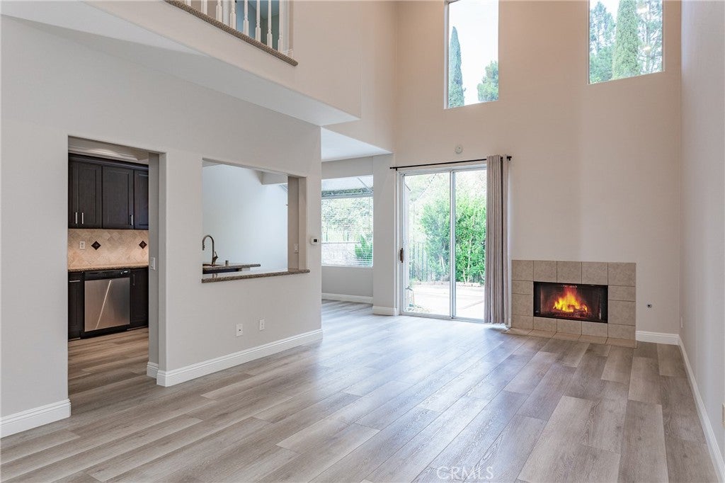 Step into this light and bright 3-bedroom, 2.5-bathroom townhouse nestled within a secure gated community. The home features soaring vaulted ceilings and elegant wood flooring throughout the lower level, centered by a living room with a cozy fireplace and a dedicated dining nook. A modern kitchen boasts dark wood cabinetry, granite countertops, stainless steel appliances, and recessed lighting. All bedrooms are conveniently located upstairs, while the exterior offers a relaxing private backyard and a 2-car attached garage. Perfectly situated, this home provides quick access to local shopping, top-rated schools, hiking trails, and the toll road.