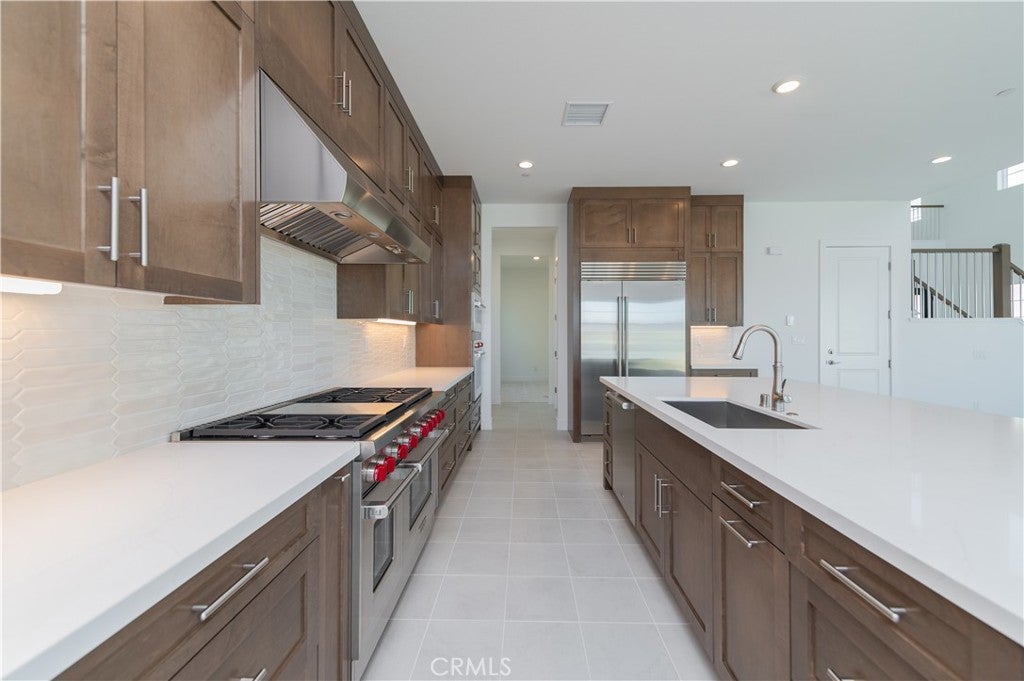 View, View, View! Brand new Toll Brothers luxury home in the prestigious FivePoint Valencia community! This contemporary residence features a dramatic two-story foyer with soaring ceilings, an expansive great room, and an open chef’s kitchen equipped with Wolf stove and built-in Sub-Zero refrigerator. This spacious home offers 5 bedrooms and 5.5 bathrooms, including a main-level flex room ideal for an office or guest suite, and an upstairs loft perfect for additional living or entertainment space. Every bedroom comes with its own ensuite bathroom, providing both privacy and convenience. Includes 3 parking spaces with EV charge . Enjoy modern energy-efficient living with solar panels, smart thermostats, and tankless water heater. Community amenities include resort-style pools, spas, clubhouse, fitness center, parks, trails, and playgrounds. Conveniently located near I-5, Six Flags Magic Mountain, top-rated schools, shopping, and dining — experience the best of modern luxury living in Valencia!