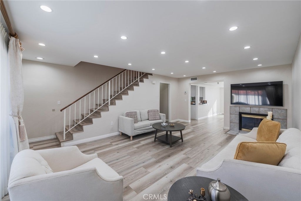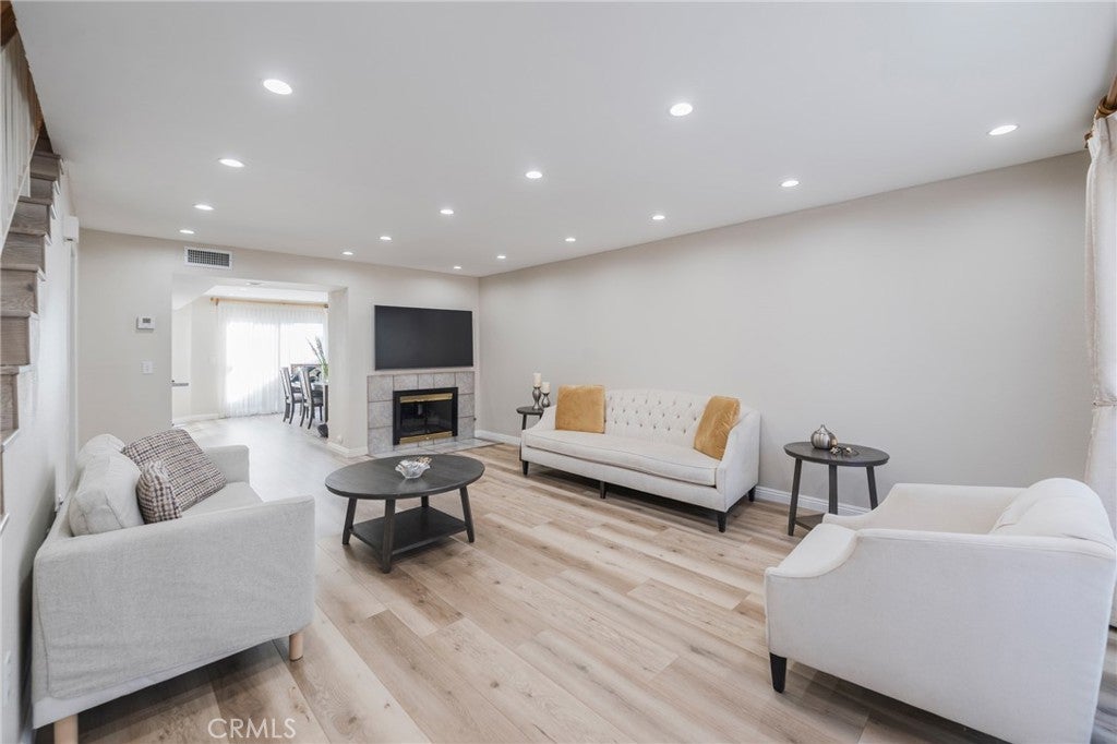 You must see... Turnkey and Move in Ready townhouse Updated Modern Interior with New flooring on the Main level ,Newly fresh paint , Remodeled Kitchen and newly top appliances, Reassess light in Main floor, Private Patio ,Attached 2 car garage and one space in front of the garage with a lot of open guest parking , All 3 bedrooms has walking closet, All bathrooms and showers been remodeled .Almost one year New AC unit. nice cozy fire place in leaving room. Residents Enjoy community amenities including an outdoor swimming pool , clubhouse and walking to tense curt. Ideally located with convenient access to nearby market, shopping , nice malls and every day essentials .