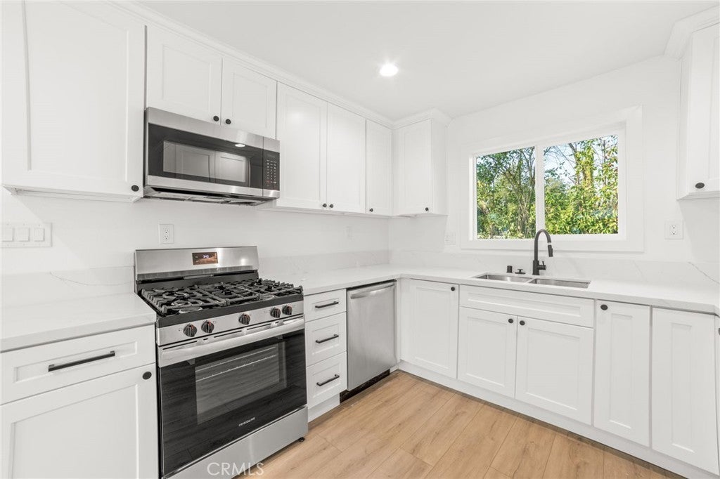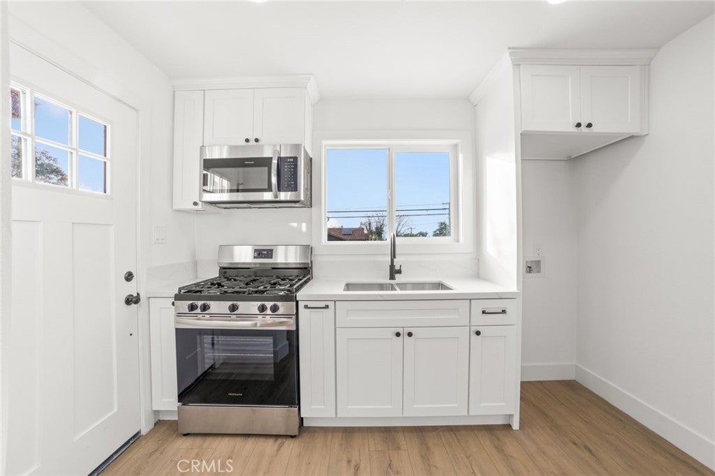 Exceptional opportunity to own a fully renovated single-family home with two newly built accessory units on one lot. The property features a 4-bedroom, 2-bath main residence, a newly constructed Junior ADU studio and a brand-new detached 1-bedroom, 1-bath ADU—offering outstanding house-hack or investment potential. The main residence showcases a bright open-concept layout with new flooring, recessed lighting, and a modern kitchen with white shaker cabinetry, quartz countertops, center island, and stainless steel appliances. Updated bathrooms feature designer tile, walk-in glass shower, and premium finishes. The JADU studio includes its own kitchen and bathroom, while the detached ADU offers a private 1-bedroom, 1-bath layout with full kitchen and separate entrance. The spacious lot provides ample outdoor space and privacy. Live in one unit and rent the other two, or lease all units for strong rental income potential. This is a turnkey property with exceptional flexibility and long-term value.