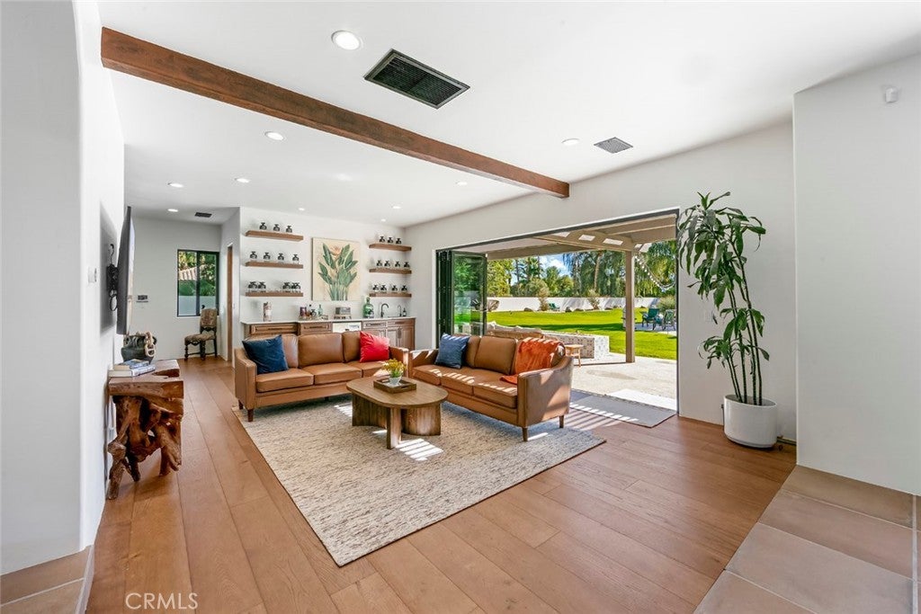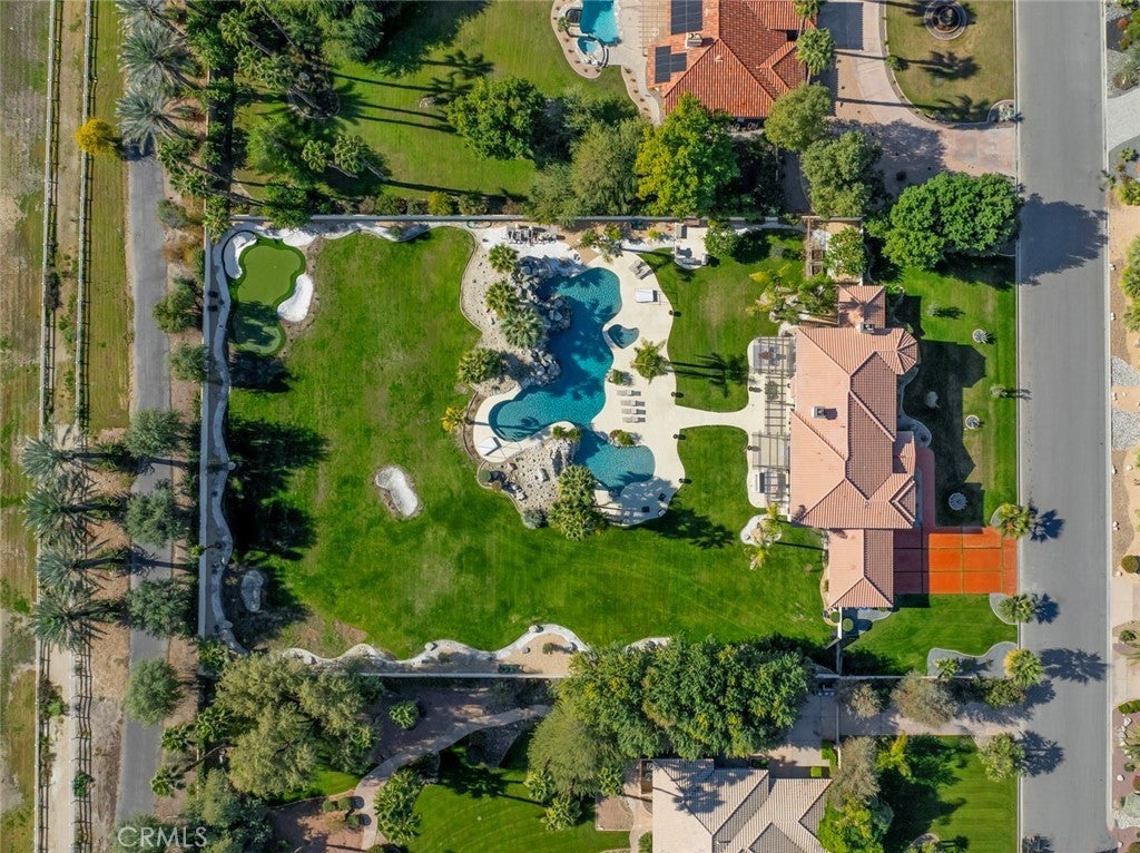 Located behind the gates of The Estates of La Quinta, 81935 Mountain View Lane presents a rare opportunity to own a true resort-caliber estate in one of the desert's most private and sought-after enclaves. Perfectly positioned near the world-class Desert International Horse Park, the Jacqueline Cochran Regional Airport, PGA West, and the exclusive Madison Club, this property offers unmatched access to elite lifestyle amenities while maintaining exceptional privacy within La Quinta. The estate is set on an expansive 1.25 acres, providing exceptional space, privacy, and the scale necessary to support its resort-style amenities and grounds. Designed for both grand-scale entertaining and everyday luxury, the estate showcases one of the Coachella Valley's largest resort-style pools, enhanced by dramatic cascading water features and expansive lounging areas. A private par-3 golf hole with crushed white Augusta-style sand bunkers creates a one-of-a-kind backyard experience rarely found in residential estates, delivering a true country club atmosphere at home.The residence has been thoughtfully remodeled with high-end finishes and architectural details throughout its six bedrooms and six-and-a-half bathrooms. Interiors feature 10-inch wide-plank European oak wood flooring, imported Spanish tile, and Carrera white marble throughout. Custom tile bathrooms, two indoor Jacuzzi tubs, and solid 8-foot alder doors elevate the sense of craftsmanship and quality at every turn. The gourmet kitchen and entertaining spaces are anchored by Wolf and Sub-Zero appliances, three wine refrigerators, a full wet bar, and a dramatic 17-foot Fleetwood-style bi-fold door that seamlessly connects indoor and outdoor living. A six-foot pass-through window further enhances the flow for hosting, while custom cast-iron A/C vents and a whole-house central vacuum system reflect the home's attention to refined detail and modern convenience. 81935 Mountain View Lane is a rare offering that blends privacy, proximity, and resort-level amenities into a single exceptional estate--an ideal retreat for those seeking the highest level of luxury living in La Quinta.