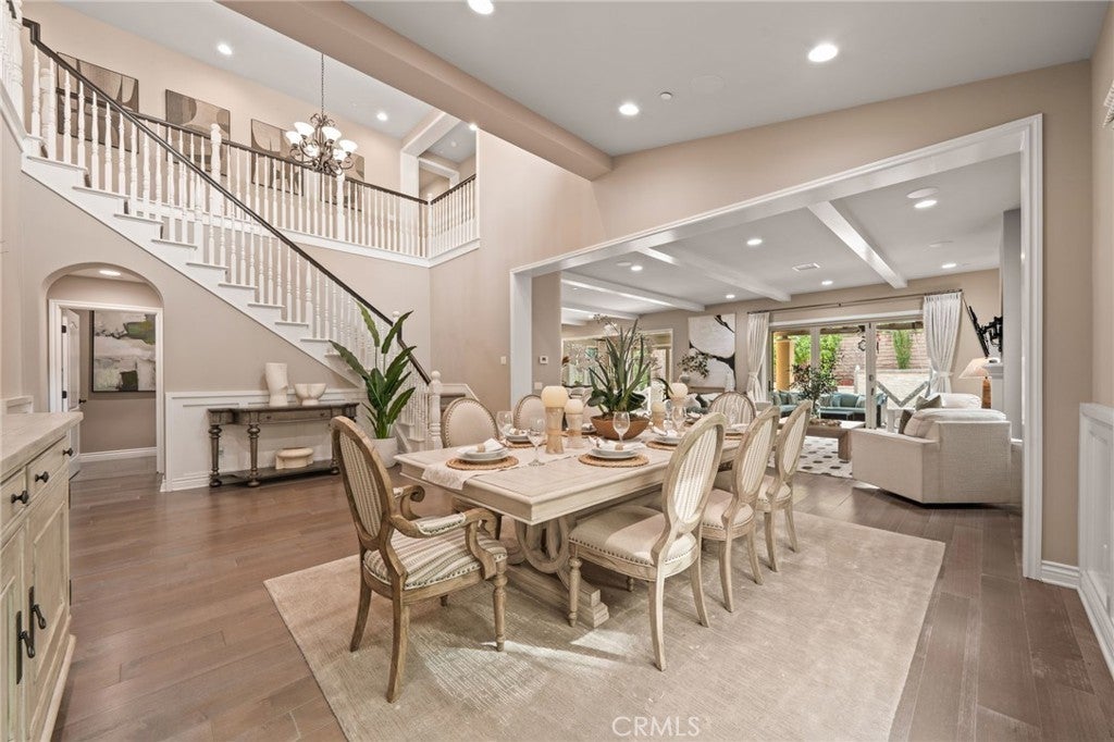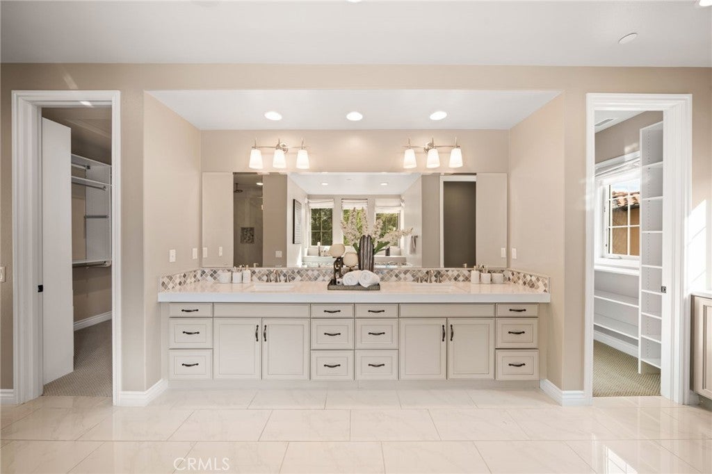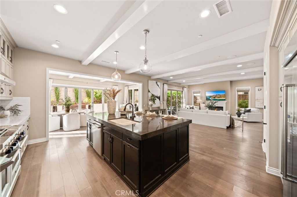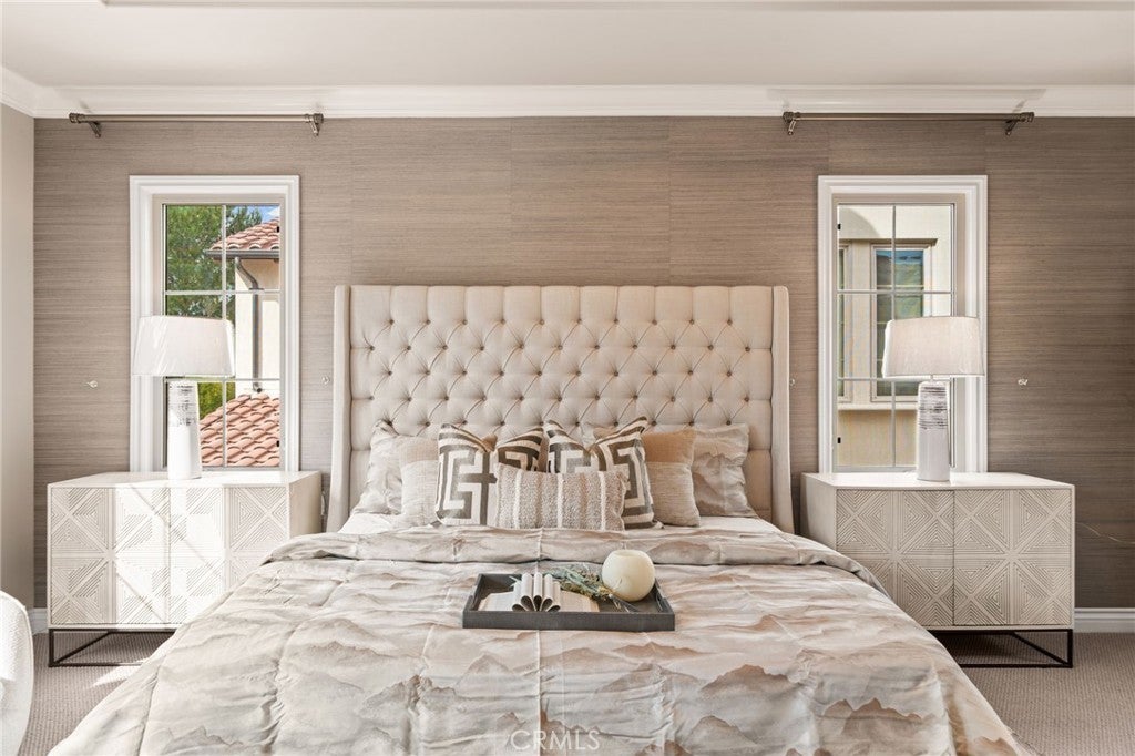 Welcome to Grove at Orchard Hills, a 24-hour guard-gated community in Irvine. This beautifully maintained residence offers 4 bedrooms and 5 bathrooms, featuring two dining areas, multiple living spaces, a fully equipped separate prep kitchen, and an attached 2-car garage, a functional layout designed for both comfortable daily living and effortless entertaining. Upon entry, a main-level bedroom suite with walk-in closet and private bath provides ideal flexibility for guests or multigenerational living. The home opens into a formal dining area, expansive great room, and gourmet kitchen centered around a large island; a separate prep kitchen adds additional cooking space and refrigeration, ideal for entertaining while maintaining a clean main kitchen. The second level functions as a private residential retreat thoughtfully designed for both comfort and practicality. The expansive primary suite serves as a serene sanctuary, featuring multiple windows that create a bright yet peaceful ambiance. The spa inspired primary bathroom includes dual vanities, a soaking tub, and a separate walk-in shower, while two oversized walk-in closets provide exceptional storage, organization, and dressing space rarely found in comparable homes. Two well appointed secondary bedrooms offer excellent natural light and comfortable proportions, including access to a private balcony that enhances airflow and indoor and outdoor continuity. A spacious central loft provides a flexible gathering area ideal for a secondary family room, media lounge, or study space, naturally connecting the upper level living areas. Backyard sliding glass doors connect the interior to a covered California room and professionally upgraded outdoor space featuring custom hardscape, built-in BBQ, fire feature, and decorative water element which creates a private outdoor setting for year-round Southern California living. The home is also equipped with fully paid-off solar panels, offering enhanced energy efficiency and long-term cost savings. Located within one of Irvine’s most prestigious neighborhoods and served by award winning schools, the home is just minutes from Orchard Hills Shopping Center, dining, and major freeway access. Offering a rare balance of luxury, privacy, and convenience, this exceptional residence is not to be missed!