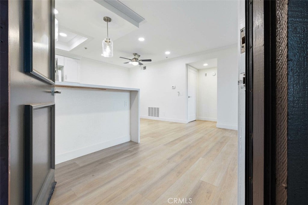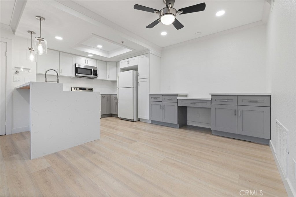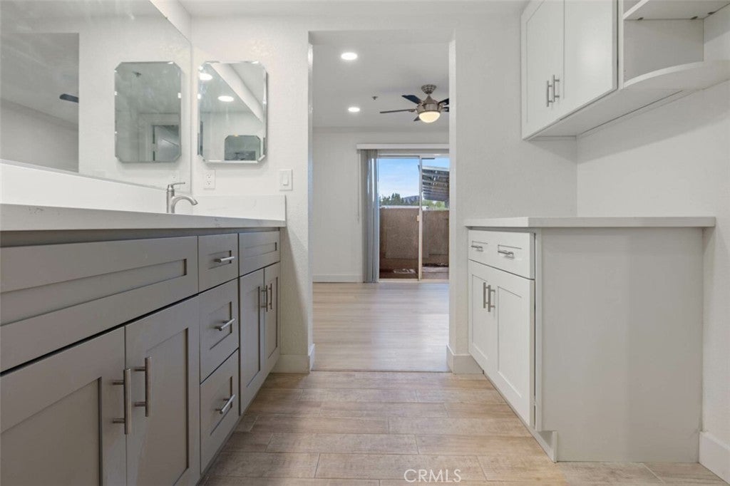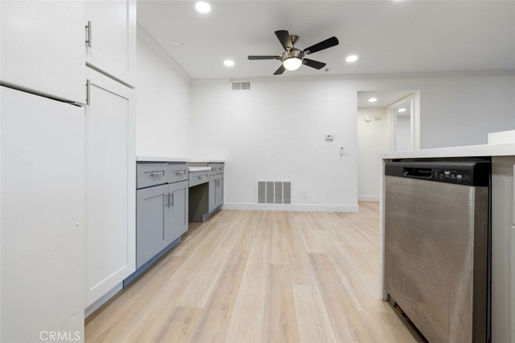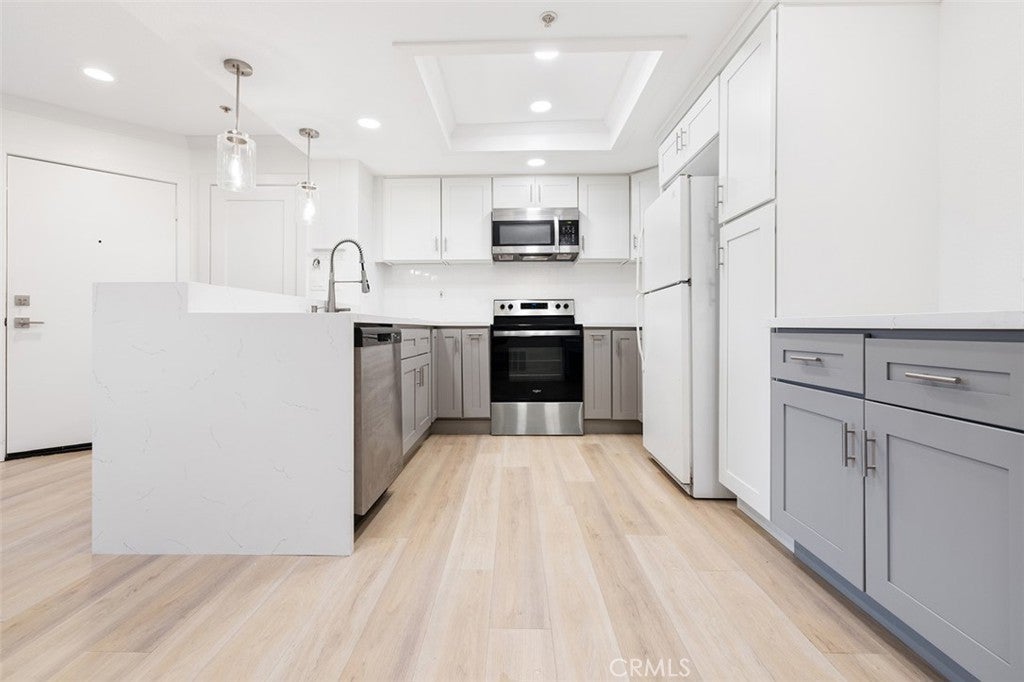 A spectacular 1BR/1BTH / 1-car garage home completely remodeled from top to bottom. A wonderful, quiet location facing the park. From the moment you walk in the meticulously crafted and selected materials work in unison to evoke the feeling of a cottage on Cape Cod. Sea washed gray tones in the planked flooring throughout are not just beautiful, but also easy to clean and hypoallergenic. Kitchen features ample white and gray Shaker cabinetry designed to maximize the storage space and create an environment for culinary creativity. Quartz countertops reflect light like the sandy shores of the Atlantic beaches. Eating options include a breakfast bar or a dining area. Open floor plan style with the kitchen, dining room, and living room. Large master bedroom with a walk-in closet. Bathroom features a custom vanity, extra storage, quartz counters, and a large shower fully tiled with a clear glass custom made shower door. Featured throughout the home are designer series electrical switches/outlets, recessed lighting on dimmers, and Shaker doors with satin nickel hardware. Inside laundry with washer/dryer included. Sliding doors from the living room and bedroom lead to a large patio with 2 storage closets. Private 1-car garage with lots of room for storage. Association is a resort-like community with two pool/spa areas, complete fitness center, playground, and clubhouse. Across the street is Tustin Ranch Sports Park and Tustin Ranch Elementary School. Close to Tustin/Irvine Marketplace, Peter’s Canyon biking and hiking trails, and Tustin Ranch Golf Course. Convenient to freeways and toll roads.
