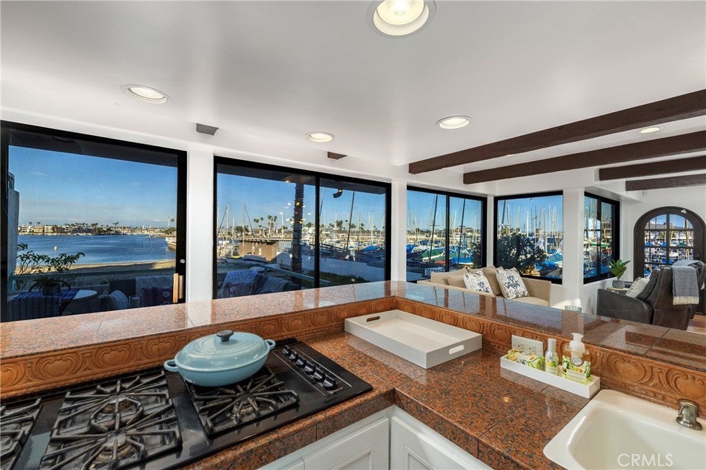 Rising from the sand like a castle on the coast, 6911 E Ocean Blvd is a rare bayfront masterpiece that commands attention from every angle. This custom home sits directly on Alamitos Bay, offering the kind of panoramic views that stretch from the Palos Verdes Peninsula to Newport Beach, with Catalina Island and mountain vistas completing the backdrop. Sunrise or sunset, the scenery is simply unmatched. Inside, the open-concept kitchen and living space frame sweeping bay views, while the top-floor primary suite with a sitting area, picture windows, and walk-in closet feels like a private tower retreat overlooking the water. Two additional bedrooms, three and a half baths, and a flowing layout makes the home as livable as it is impressive. The rooftop patio serves as the crown of this coastal castle, delivering 360-degree views that have to be seen to be believed. Below, a three-car garage with a rare rear door opens directly to the sand, perfect for launching paddle boards or boats straight into the bay. A beach-level bathroom and laundry round out the thoughtful design. Regal in presence and unmatched in location, 6911 E Ocean Blvd is your chance to claim your castle on the sand and Live the Peninsula Lifestyle.