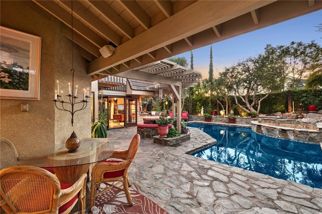 Welcome to 30951 Via Errecarte, where refined luxury, exceptional privacy and the coveted San Juan Capistrano lifestyle come together in a remarkable semi-custom residence on a 10,000 sq ft lot. Expanded beyond the original floor plan, this thoughtfully designed home offers five bedrooms, three bathrooms- all enhanced by custom woodwork that elevates the home’s architectural character while maintaining effortless livability. The chef-inspired kitchen features custom cabinetry, new porcelain countertops with matching backsplash, stainless steel appliances and a spacious dine-in bar—perfect for both daily living and endless entertaining. The massive main-floor bedroom, currently styled as a private office, provides an ideal setting for work-from-home executives or a home-based business. At the heart of the property is a resort-inspired backyard designed for both elevated entertaining and everyday escape. A stunning pool and spa, built-in outdoor dining table with custom benches, and lush landscaping create a true private compound feel—serene, secluded, and completely turnkey. Ultimate privacy surrounds the home, making each day feel like a personal retreat. The primary suite serves as a true sanctuary, featuring a custom fireplace with a separate sitting area, a spa-like bath, a walk-in closet, and ample cabinetry space. Step directly out to a 400+ sq ft covered retreat —bringing the usable living space to approximately over 4,200 sq ft—ideal for an outdoor gym, sauna, yoga space, or year-round alfresco dining. This thoughtfully designed extension transforms everyday routines into intentional moments of relaxation. Inside, the home continues to impress with expansive bedrooms and beautifully remodeled secondary bathrooms. Thoughtful modern upgrades include whole-house water filtration and fully owned solar panels, offering comfort, efficiency, and long-term peace of mind. Living in San Juan Capistrano means embracing an unmatched lifestyle—equestrian culture, abundant parks, the charm of historic downtown Old San Juan, and a scenic bike trail that leads directly to the beach. Add award-winning schools, including the prestigious St. Margaret’s, and you have a location that is as desirable as it is welcoming. 30951 Via Errecarte is more than a home—it is a refined, private retreat crafted for those who value space, craftsmanship, and an elevated Southern California way of life.