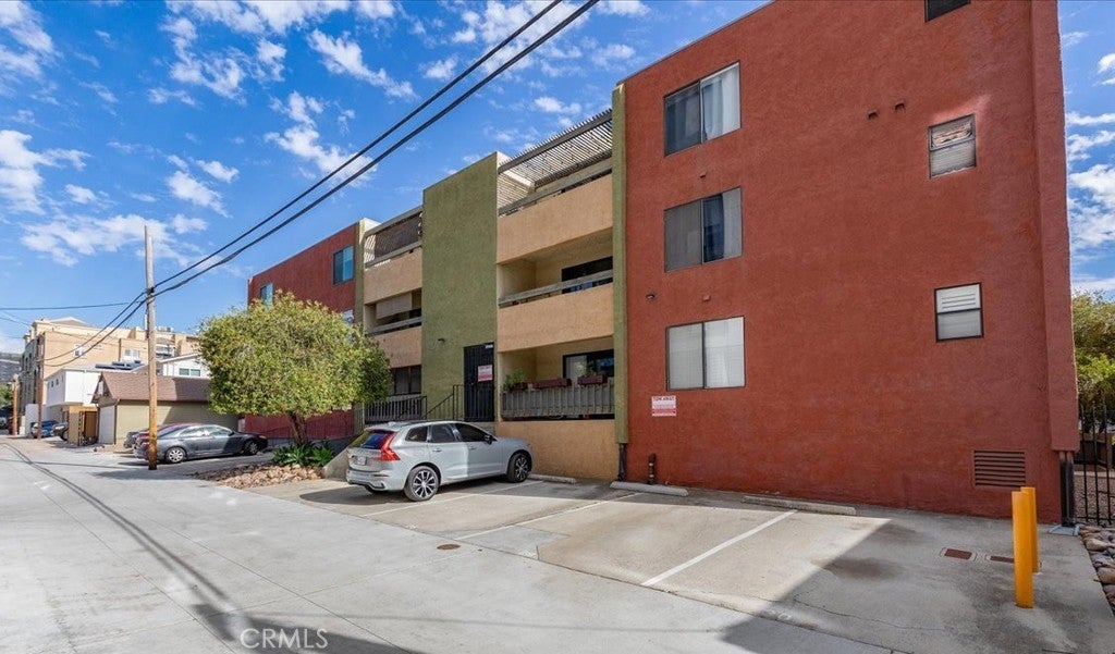 Located between University Heights & Hillcrest, this property offers convenient walking access to a variety of restaurants, shops, coffee houses, breweries, and shopping. Just a short stroll away, residents can easily reach the Sunday Farmers' Market and Balboa Park, making everyday living and entertaining a pleasure in this dynamic neighborhood. As you enter the residence, this 1st level end front unit flaunts windows and a slider balcony door that allows for natural light and tree views, all with plantation shutters for privacy. The kitchen is nicely set up with an abundance of cabinet space, quartz countertops, an elevated eating counter, and stainless steel appliances. There is a spacious dining room and living area that opens to the kitchen, and there is a large balcony area off the living room. The bedrooms are of good size and have natural daytime light as well. The primary bedroom has two closet spaces and extra storage. The bathrooms have been nicely remodeled in the past with quartz countertops, tiled showers, fixtures, and tiled floors in the wet areas. There are laminate wood floors throughout, central AC and heat, an indoor laundry area, and hallway storage. There is secured underground tandem parking with storage that you can access by stairs or elevator, and permitted guest parking behind the building. There is no unit below, and unit is elevated above ground level with landscaping for privacy. The complex is well kept with a front and back gated entrance and a nice courtyard. Incredible opportunity to own in this exciting location where the city is spending upwards of $30 million to create the new Normal Street Promenade. You are also just a quick drive away from the San Diego Zoo and Downtown San Diego.
