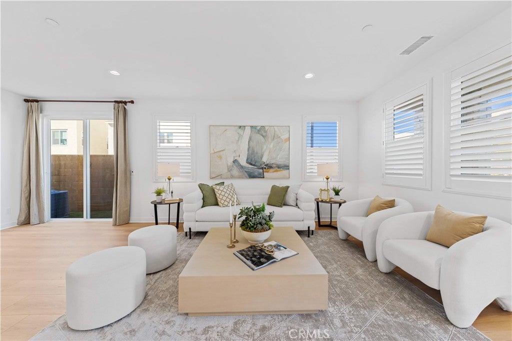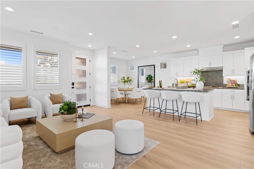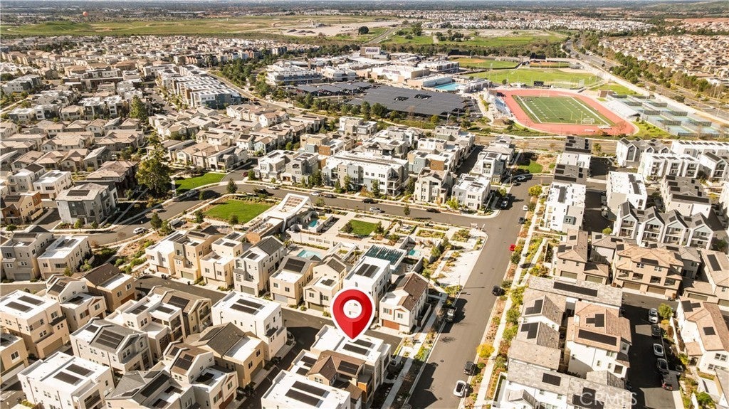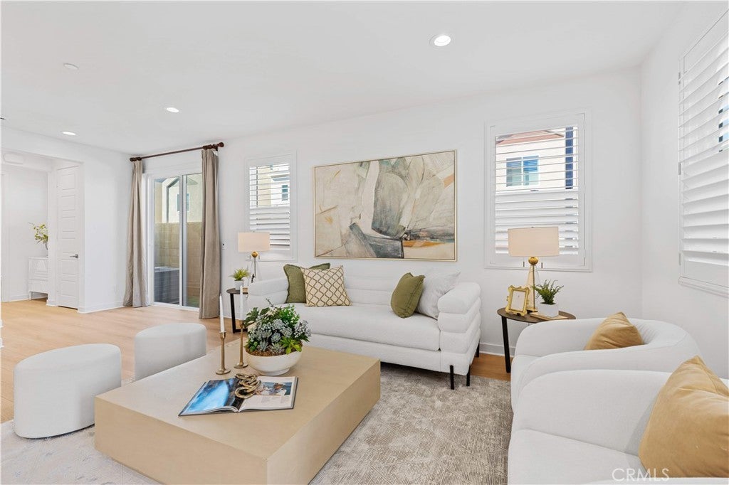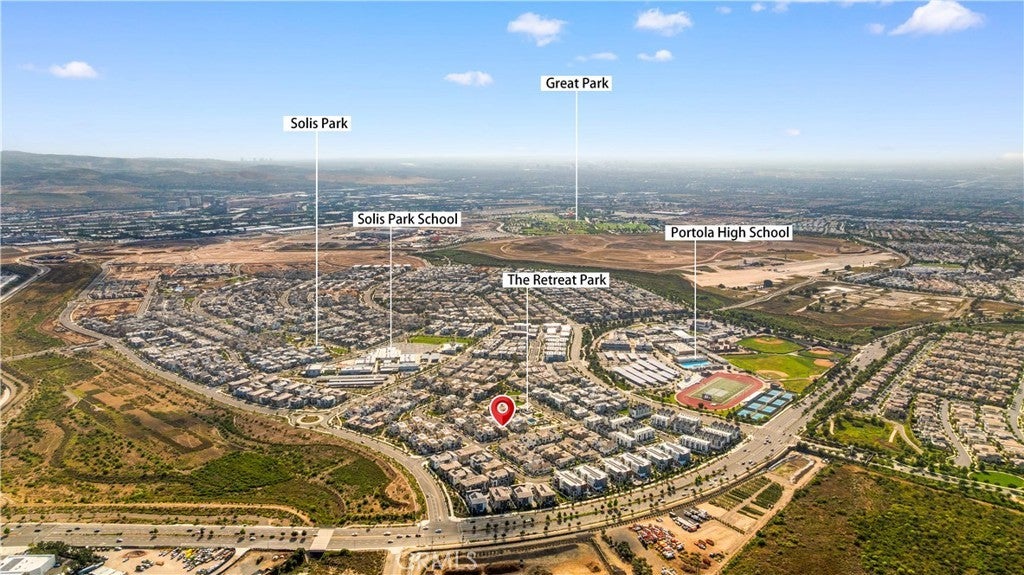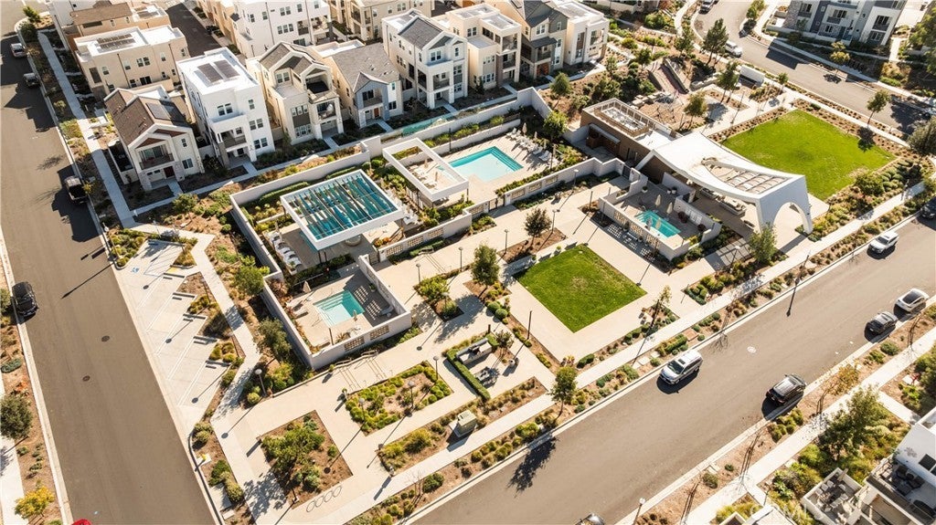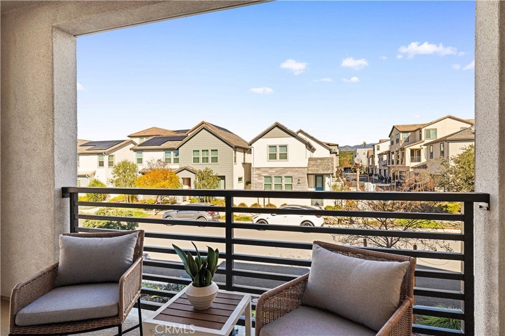 This stunning corner-lot detached home features the highly desirable Plan 1 of Aer in Solis Park at the Great Park Neighborhoods. Offering 3 bedrooms, 2.5 bathrooms, and a versatile tech loft, the home blends modern design with practical functionality in a thoughtfully planned layout. The open-concept main level is filled with natural light, highlighted by high ceilings, expansive windows, and sliding glass doors that create a bright and welcoming living environment. The chef-inspired kitchen serves as the heart of the home, featuring an oversized center island, granite countertops, stainless steel appliances, and a spacious walk-in pantry—ideal for both everyday living and entertaining. Luxury vinyl plank flooring runs throughout the entire home and is complemented by upgraded recessed lighting throughout, while the first floor also includes a powder room and a convenient built-in wardrobe area near the garage entry. Upstairs, the home offers three well-proportioned bedrooms, a flexible tech loft ideal for a home office or study area, and a laundry room with sink for added convenience. The primary suite provides a peaceful retreat, complete with a private balcony, a generous walk-in closet, and a spa-like bathroom featuring dual vanities and a walk-in shower. Residents enjoy an exceptional resort-style lifestyle in the heart of the Great Park Neighborhoods, with access to an extensive array of amenities including multiple resort-style swimming pools, basketball courts, playgrounds, parks, picnic areas, and a network of scenic walking and biking trails. Community clubhouses and thoughtfully designed green spaces foster an active yet relaxed living environment. The home is located within the highly acclaimed Irvine Unified School District, known for its top-rated schools and strong academic reputation. With its prime corner location, abundant natural light, and access to world-class community amenities, this home offers a refined blend of comfort, convenience, and the signature Great Park lifestyle.