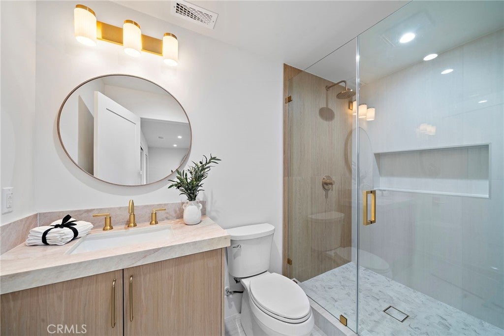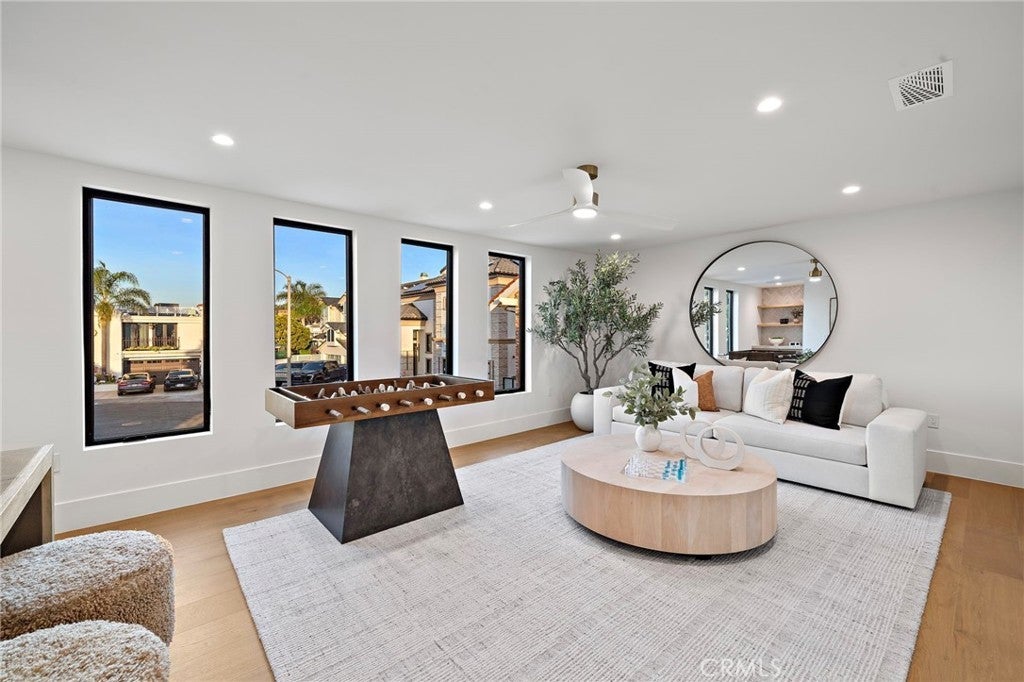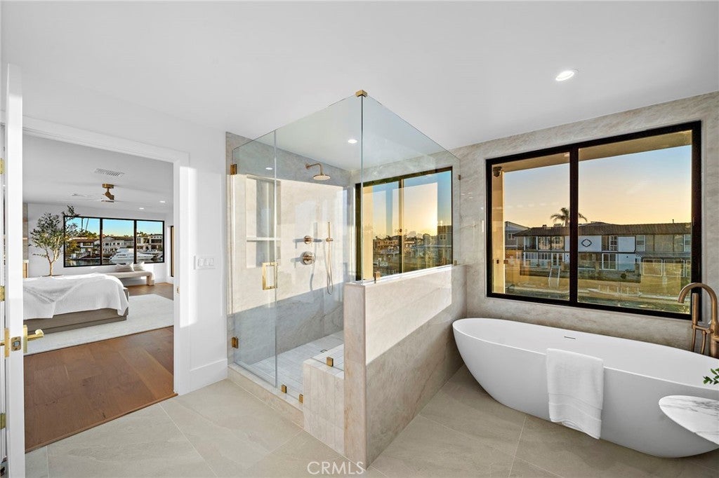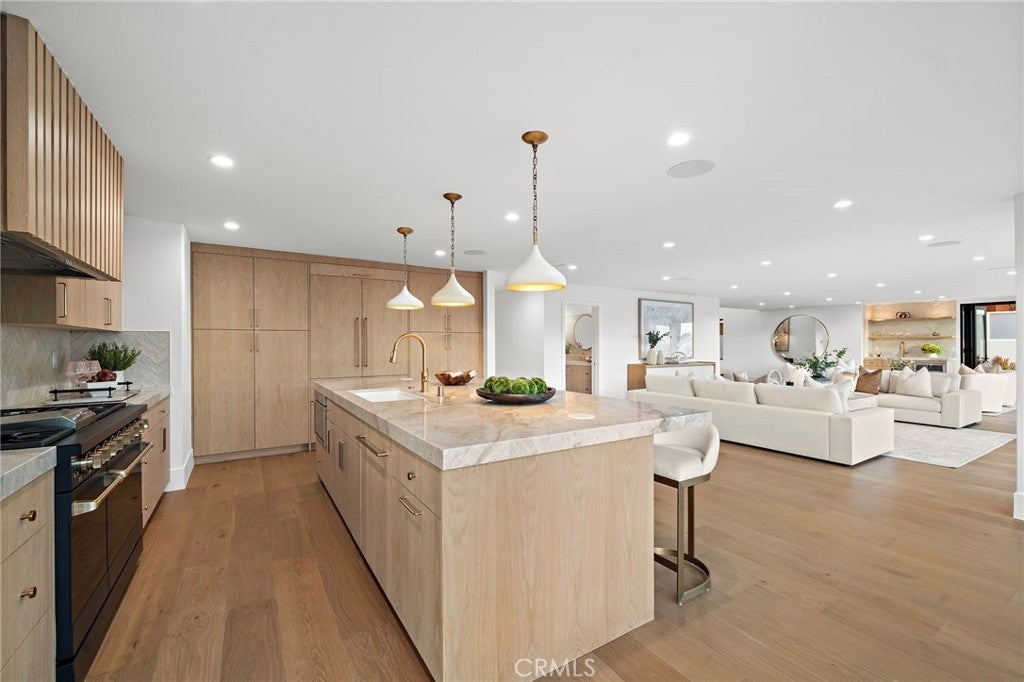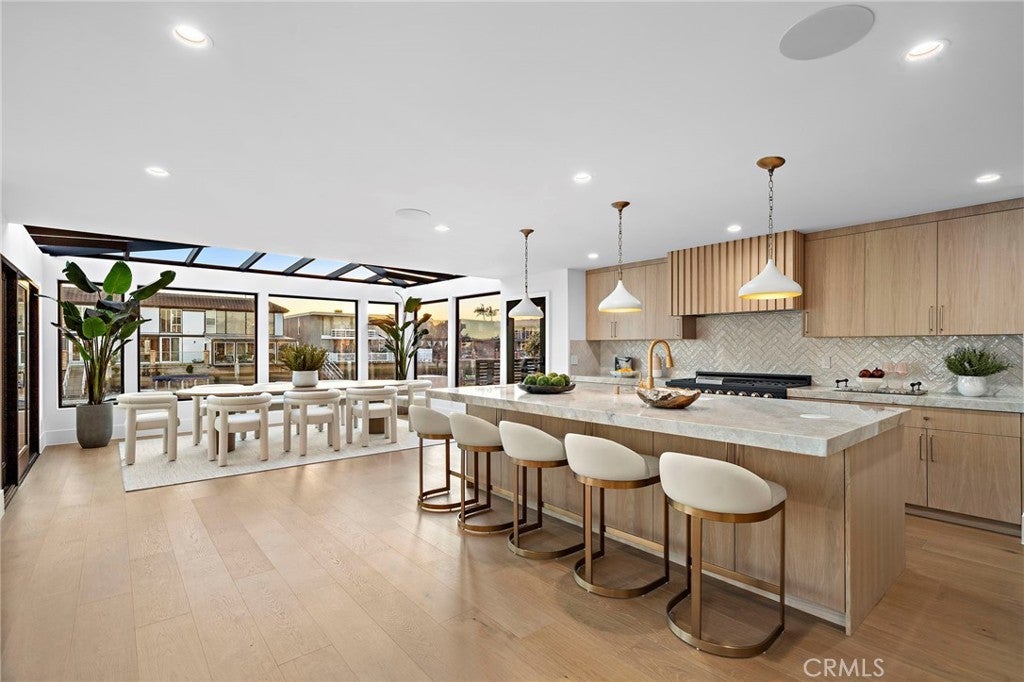 Stunning contemporary custom built waterfront residence located on Humboldt Island. Prime waterfront location with exceptional tri channel views. Encompassing 82 feet of expansive water frontage with a private 70-foot dock. Construction was just completed on this magnificent property that was taken down to the studs and completely rebuilt with all the finest finishes. As you enter the home you are greeted by a massive iron and glass pivot door that leads into the foyer with high volume ceilings. The beautiful water views are immediately in sight as your move into the living space with its open intuitive flowing floor plan. The Italian Bonelli bi fold doors stretch throughout the back side of the residence creating a seamless connection from the interior to the outdoor waterside deck. The great room style of this floor plan captures every inch of the waterfront views. Fabulous kitchen features a center island adorned with Taj Mahal quartzite counters. Rich white oak custom cabinetry with designer selected hardware offers ample storage and dual pantries. High end appliances featuring Thermador Freedom built in French door refrigerator and THOR Gordon Ramsey series double oven and range will be a true delight for the new homeowner. Rich white oak hardwood flooring complements the entire space in the home. Phenomenal glass domed dining area commands attention and features even more of the wide waterfront views. There is a convenient downstairs bedroom with en suite bath that can be utilized in many ways. Upstairs you will find the primary suite with its tranquil ambience. The views from the primary suite are amplified by the extensive window placements. There is a lovely sitting area and built in cabinetry with beverage center. The walk-in closet will be sure to accommodate all your wardrobe. The primary bath is sumptuous in design with a large soaking tub and a triple sized shower area. Custom white oak cabinetry and Lux quartz countertops. There are three additional bedrooms upstairs all come complete with en suite baths. The fifth bedroom is utilized as a bonus room which offers additional opportunity for relaxed and comfortable living. The waterfront deck area faces in a Southern direction and is sunny all day long allowing hours of enjoyment for living the Huntington Harbour Lifestyle!