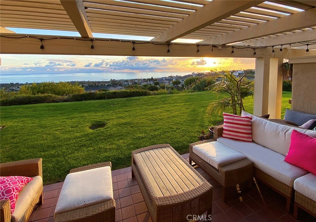 Sunset enthusiasts, this is your dream home! Relish breathtaking panoramic views of the Pacific Ocean, Seal Rock, and Catalina Island from this highly desirable vantage point. This stunning unit features a complete modern remodel throughout, including: • Gas/wood-burning fireplace • Refrigerator, washer, and dryer • Central A/C • 2-car garage • Premium high-end flooring • Double-pane vinyl windows and doors • Vaulted ceilings • Granite countertops • High-efficiency ductwork • Sleek glass doors • Contemporary stairway • Wine cooler and wet bar Enjoy spectacular ocean views right from the living room and master bedroom. Step through the back patio slider to an incredible outdoor living space—perfect for relaxing with friends while soaking in those iconic Catalina sunsets. Prime location: Just 1 block to the golf course, and only 1.2 miles to pristine beaches and scenic walking trails. The HOA enhances your lifestyle with 24/7 security patrols, common area landscaping and irrigation, exterior painting, street maintenance, and access to 4 community pools and spas. This rare, elevated panorama ocean-view unit sits on the highest street in the development—offering unmatched privacy and vistas. Available Jan. 31, 2026 — this one won’t last long.