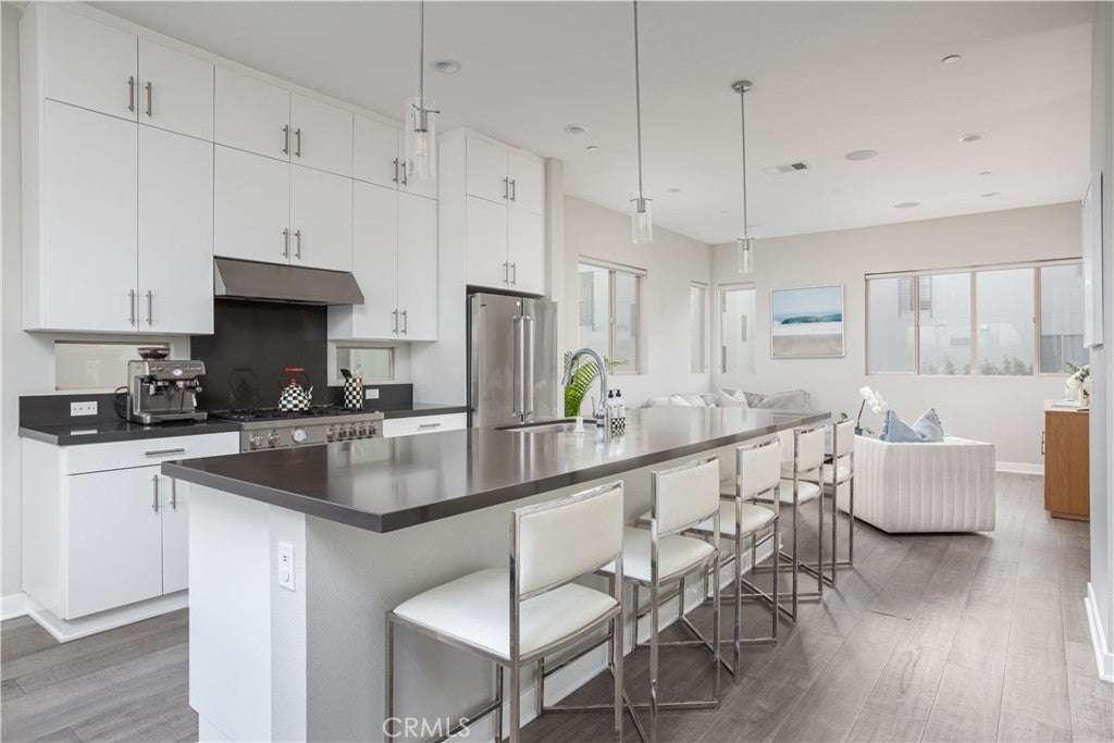 Experience elevated coastal living in this light-filled, multi-level residence that blends modern design with effortless beachside appeal. Thoughtfully updated throughout, the home offers a clean, contemporary aesthetic paired with a highly functional layout designed for everyday living and entertaining alike. The main living level features an open-concept floor plan where the living room flows seamlessly to a private balcony, inviting ocean breezes and abundant natural light. A conveniently located powder room serves guests, while the adjacent kitchen and dining area anchor the space with both style and practicality. The gourmet kitchen is outfitted with Italian Bertazzoni appliances and sleek quartz countertops, making it equally suited for casual meals and elevated entertaining. Three ensuite bedrooms provide comfort and privacy, each offering its own serene retreat. The lower-level bedroom opens directly to a private patio, creating an ideal indoor-outdoor escape. At the top of the home, the rooftop deck delivers a true showpiece — complete with an outdoor kitchen and sweeping panoramic views, perfect for hosting gatherings or unwinding beneath the evening sky. Ideally located near freeways, beaches, and a curated selection of coffee shops and restaurants, this home offers the best of beach city living with convenience, style, and flexibility.