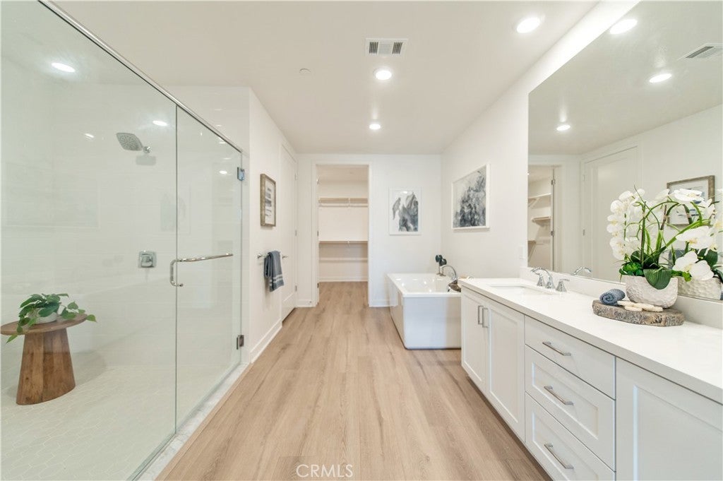 Step into refined contemporary living in this elegant luxury condo, ideally situated within the prestigious Lexington community at Central Park West. Designed for both style and comfort, the open-concept layout offers generous living and dining spaces framed by floor-to-ceiling windows, bathing the home in natural light and capturing serene community and city views. The spacious primary suite is a true retreat, featuring a spa-inspired en-suite bath with dual vanities and a large walk-in shower. A second en-suite bedroom is thoughtfully placed to ensure privacy, while a flexible third room near the entry serves beautifully as a guest suite, home office, or an optional third bedroom, complemented by a full guest bath. Elevated finishes abound, including wide-plank luxury vinyl flooring, enhanced wall insulation, a chef-caliber kitchen with quartz island, designer backsplash, premium appliances, custom crown moldings and ceiling fan. This residence is also ADA-compliant, blending sophistication with accessibility. Residents of Lexington enjoy a boutique collection of amenities, including a private fitness center, outdoor lounge with BBQ, dog park, and terrace spaces, along with full access to Central Park West’s resort-style offerings—clubhouse, state-of-the-art gym, yoga studio, pools, spa, playgrounds, and pickleball courts. Perfectly positioned on the border of Irvine and Newport Beach, this exceptional home offers effortless access to everyday indulgences. Walk to renowned dining, shopping, and fitness destinations such as Mother’s Market, North Italia, Ruth’s Chris, Houston’s, Lady M, Starbucks, and LA Fitness, with a planned pedestrian bridge enhancing connectivity. Just minutes from premier medical centers, South Coast Plaza, Fashion Island, UCI, major business districts, and John Wayne Airport, this home seamlessly unites luxury, lifestyle, and location. Schedule your private tour and experience the elegance firsthand.