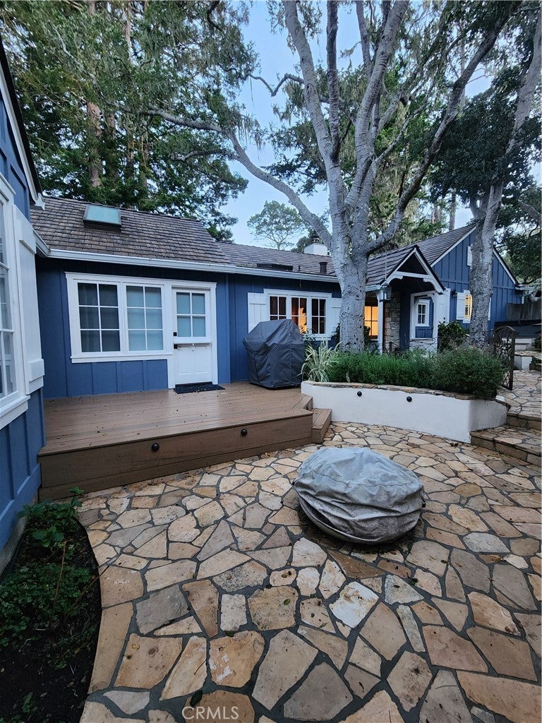 This beautiful, newly renovated, **FULLY FURNISHED**, single-story Carmel cottage is ideally located just four blocks from the beach and within easy walking distance to town. The home is warm and welcoming, featuring a Belgian-influenced design with vaulted ceilings, multiple fireplaces, and character-rich vintage wood lighting throughout the living, dining, and family rooms. The updated kitchen flows into the family room and is thoughtfully designed with French oak cabinetry, handcrafted stone accents, and a statement La Cornue range—equally suited for everyday living and entertaining. The primary bedroom enjoys peaceful garden views and opens to a private porch, perfect for quiet mornings or relaxed evenings. An en-suite bathroom includes a soaking tub. The second bedroom offers a built-in bed with storage and an integrated workspace, while the third bedroom provides additional privacy for guests or family. A two-car garage with laundry and generous storage adds convenience, while the serene garden and fire pit create an inviting outdoor setting for gathering or unwinding. Combining timeless Carmel charm with refined updates and a walk-to-town-and-beach lifestyle, this home offers a rare and inviting retreat.