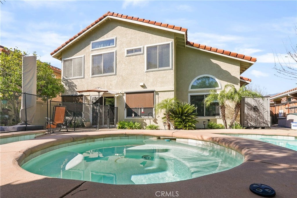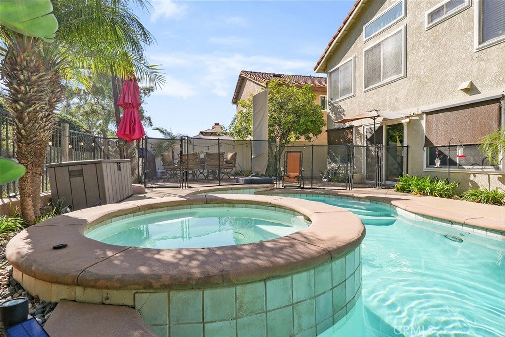 This is a lovely pool home that backs to Tijeras Canyon Trail! The cul de sac location and no one behind makes it a very quiet home. Four bedrooms and two baths upstairs, with office and full bath downstairs. One large bedroom has a murphy bed for added space and flexibility. The back yard is beautiful with fenced pool and plenty of room for entertaining. The home is solar equipped with many upgrades throughout. A 3 car garage, 3 car driveway, plus ample street parking make it easy to host social events to enjoy that sparkling pool with family and friends. There is an amazingly productive Haas avocado tree in the front yard for guacamole dip to serve them! This beautiful home is walking distance to the town center, parks, schools, shopping, trails and great restaurants. Come and see it! And don't miss the 360 degree tour at the top of the listing!