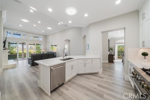 Breakfast Bar, Built-in Features, Separate/Formal Dining Room, Eat-in Kitchen, High Ceilings, Recessed Lighting, Unfurnished, All Bedrooms Down, Bedroom on Main Level, Walk-In Closet(s), Galley Kitchen, In-Law Floorplan, Main Level Primary, Open Floorplan, Primary Suite, Quartz Counters, Storage