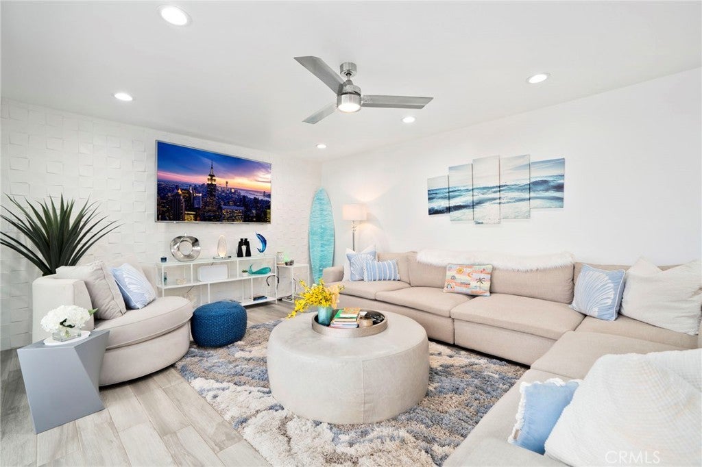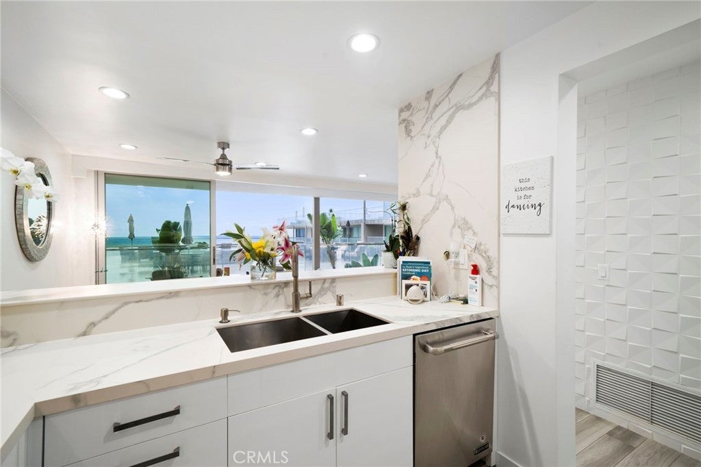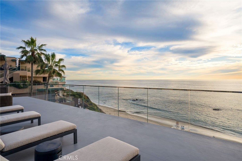 Perfectly positioned on the sand in the heart of Laguna Beach, this beautifully remodeled coastal residence is located within Laguna Sands- a private, secure, gated oceanfront community that has recently undergone a comprehensive multi-million-dollar renovation. Designed to capture the essence of refined seaside living, the interior is filled with natural light and features floor-to-ceiling La Cantina sliders that open to coastal breezes and soothing ocean sounds. Elegant wood-look porcelain tile flooring flows throughout the home, complemented by LED recessed lighting and ceiling fans that enhance the bright, airy ambiance. The gourmet kitchen is thoughtfully appointed with upgraded cabinetry, Italian porcelain countertops and backsplash, and a full suite of stainless steel appliances, ideal for both everyday living and entertaining. The spacious primary suite offers mirrored wardrobe doors with custom closet systems, while the highly upgraded, spa-inspired primary bathroom features a large walk-in shower and dual vanity sinks. The guest bathroom is equally well designed, offering a tub/shower combination, dual sinks, and a convenient stackable washer and dryer. A well-proportioned second bedroom provides a welcoming retreat for guests or flexible living space. In addition to refreshing coastal breezes, approved, permit-ready plans are available for the installation of air conditioning, should the next owner desire. Residents of Laguna Sands enjoy exceptional amenities including direct beach access, a newly renovated oceanfront swimming pool, and two expansive community terrace decks offering sweeping coastline views. Unit #47 features direct access to one of these beautifully updated outdoor spaces, complete with lounge furnishings, barbecues, and fire pits, perfect for entertaining or relaxing by the sea. The building offers elevator access to the parking garage and exceptional walkability to Laguna Beach’s renowned shops, art galleries, and restaurants. A trolley stop located just outside the building provides convenient access to downtown and surrounding areas, while the iconic Surf & Sand Resort is located immediately next door. This is coastal luxury living at its finest, where oceanfront serenity meets the vibrant Laguna Beach lifestyle. Furnishings may be included, offering a move-in-ready, turnkey opportunity.