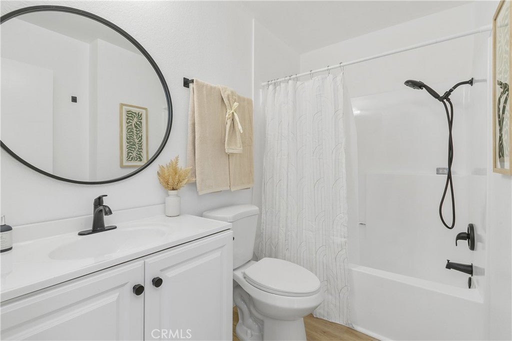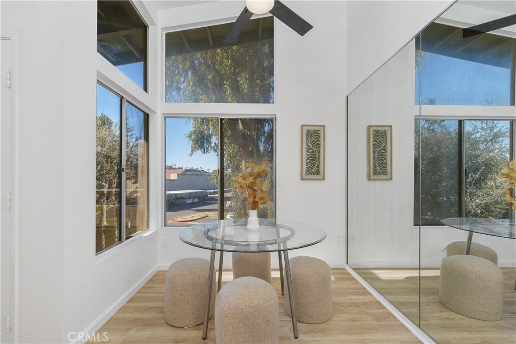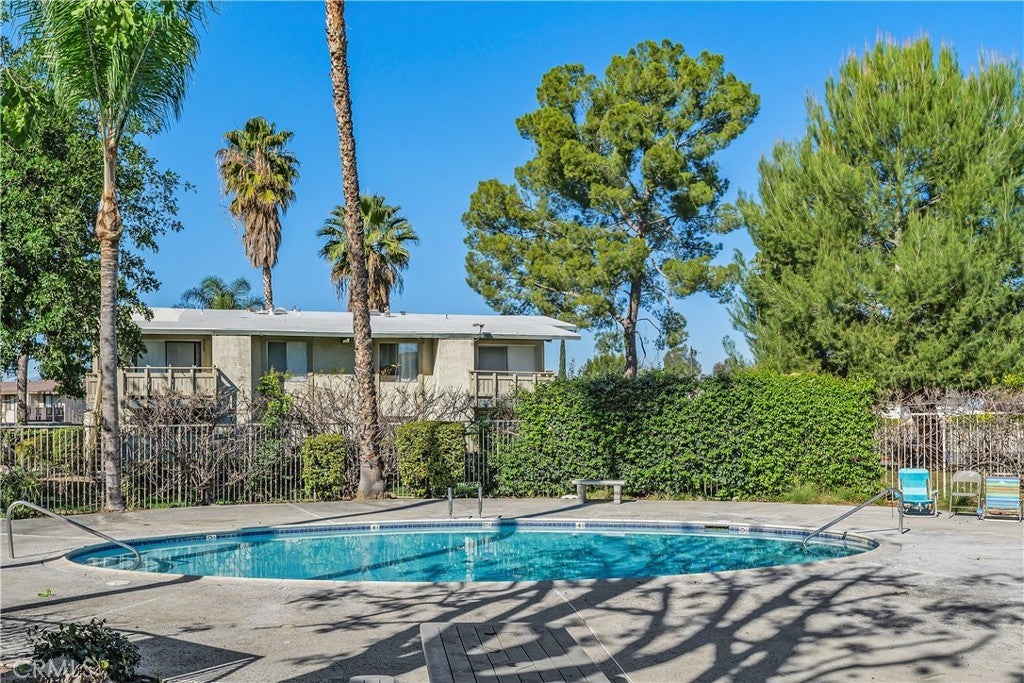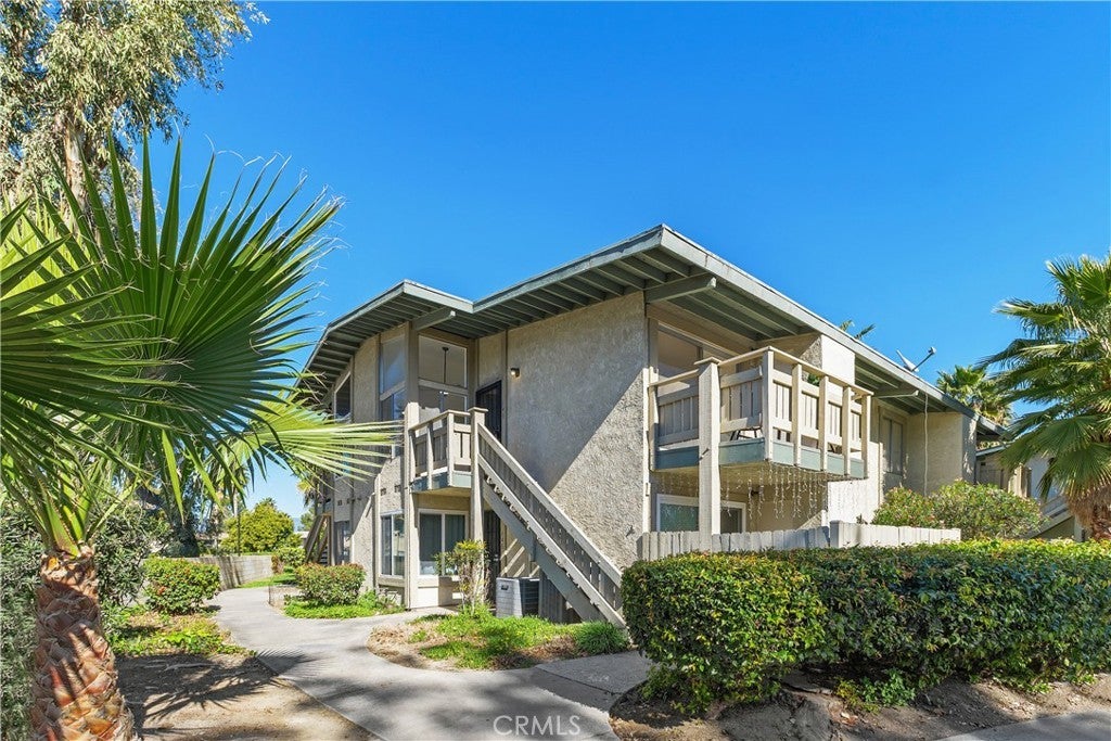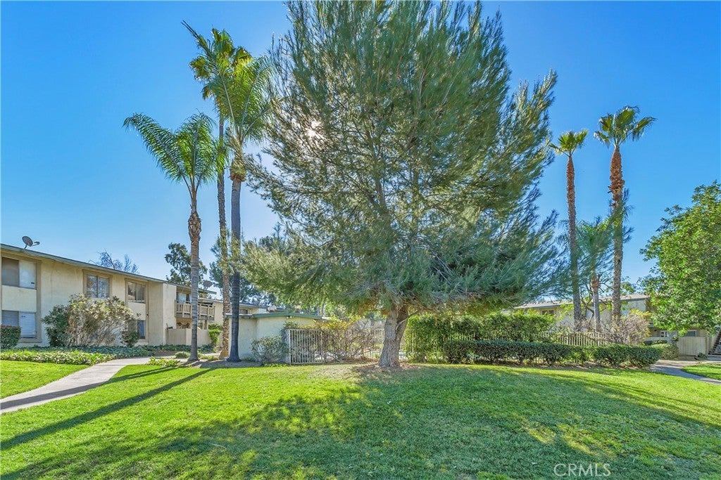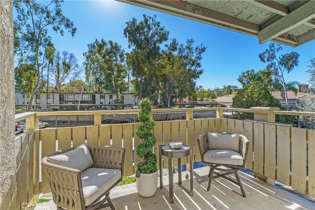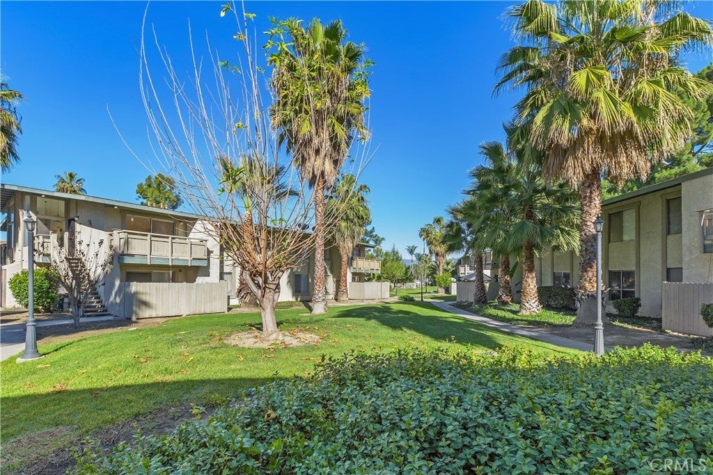 Welcome to this beautifully remodeled 1-bedroom condo located in the desirable, gated community of Country Wood Estates. A private upper-level entrance opens to a spacious, light-filled living room featuring vaulted ceilings, new laminate flooring, and fresh interior paint. The living area flows seamlessly to a private patio offering serene tree and hill views. The updated kitchen showcases painted cabinetry, Taj Mahal quartz countertops, a new sink and faucet, and updated chandelier lighting. Adjacent to the kitchen is a generously sized dining area with floor-to-ceiling windows, providing abundant natural light. The remodeled bathroom includes a new vanity, updated lighting and mirror, a reglazed bathtub enclosure, and new shower fixtures. The bedroom is well-sized with vaulted ceilings, peaceful views of trees and hills, and a large walk-in closet. Additional features include in-unit laundry, newer central AC unit, a designated covered parking space, and extra storage located on the balcony. The community is well maintained with mature landscaping, greenbelts, and a pool. Conveniently located near Loma Linda University Medical Center, local schools, and shopping. The Country Wood Estates community is an FHA approved community.