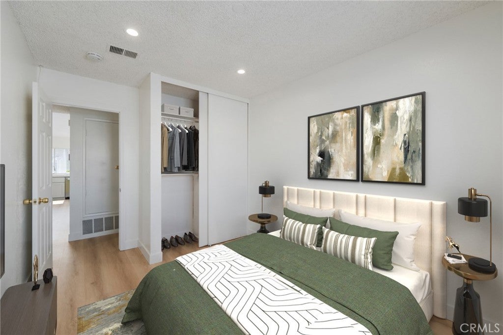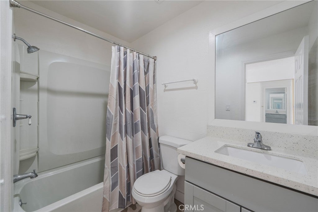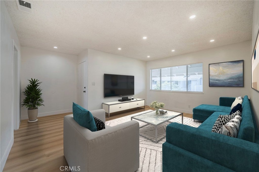Don’t miss the opportunity to own this amazing 3-bedroom, 2-bathroom home with an assigned covered parking space and 2 additional parking passes in a gated community. This newly remodel home comes with all recessed lights, central heat and air,quatz countertops, brand new laminate flooring, stove and microwave oven. Nice open floor plan with spit bedroom concept provides maximum comfort and privacy. Large living room. Spacious master bedroom with 2 over-sized floor to ceiling mirrored closet, modernized ensuite bathroom with generous vanity. Good size 2 bedrooms by the kitchen/family room share a full-size bathroom. The bright kitchen leads to a large private balcony. Ampler natural light in every room gives a positive feeling throughout. Community includes 2 swimming pools and spas; laundry facilities conveniently located right around the corner. Bring your suitcases in and enjoy your new home. Furnishing photos are virtual staged.